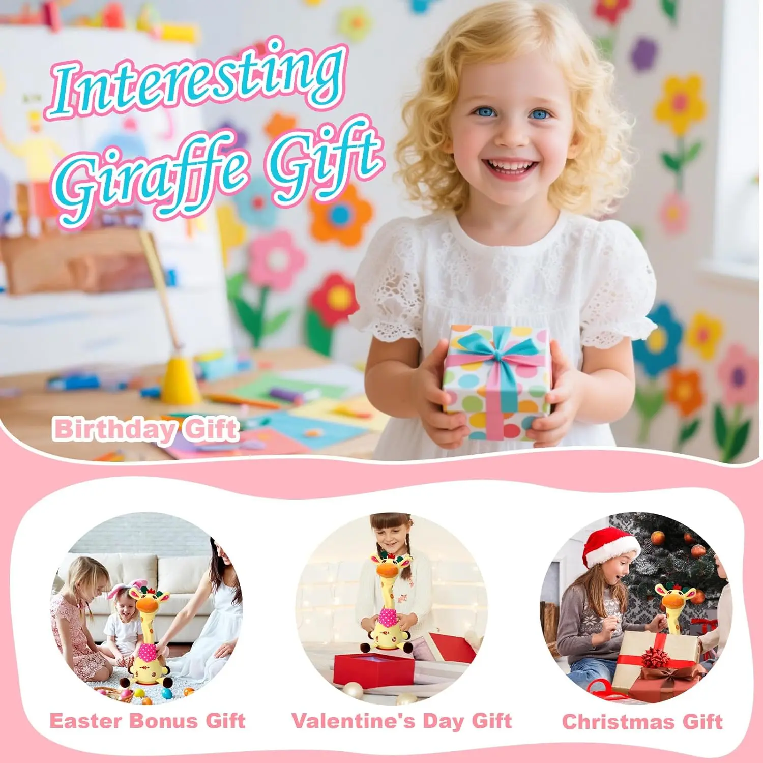 🦒This giraffe toy features a durable built-in rechargeable design, eliminating the need for battery replacements and ensuring both environmental friendliness and safety. The included charging cable makes it easy to carry and charge anytime, anywhere, allowing children to play to their heart's content without the disappointment of running out of power.