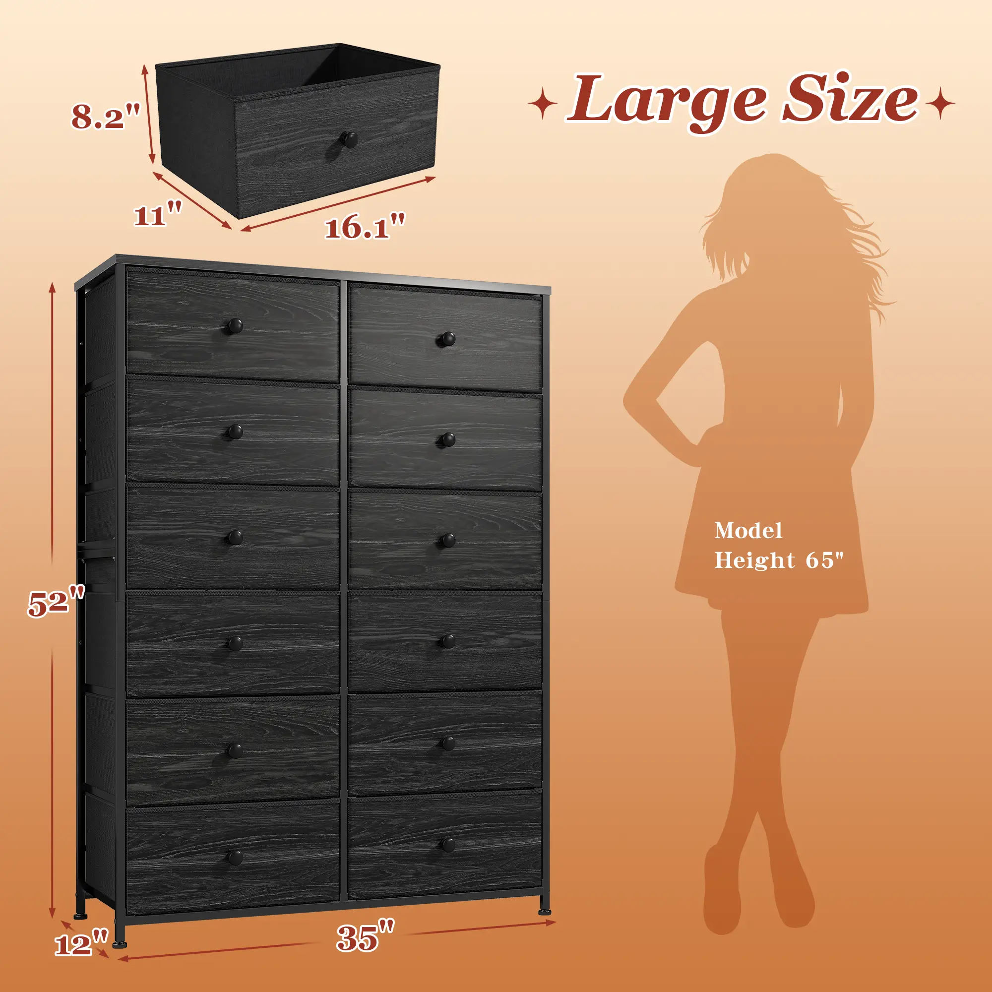 ·【Large Capacity with 12 Drawers】-The Raybee 52.3" Tall Dresser (35" L x 12" W x 52" H) features 12 spacious fabric drawers, offering ample storage for clothes, accessories, and more. Perfect for small spaces like bedrooms, closets, or entryways, this dresser helps keep your home organized and clutter-free. Great for back-to-school, spring sales, or holiday promotions.