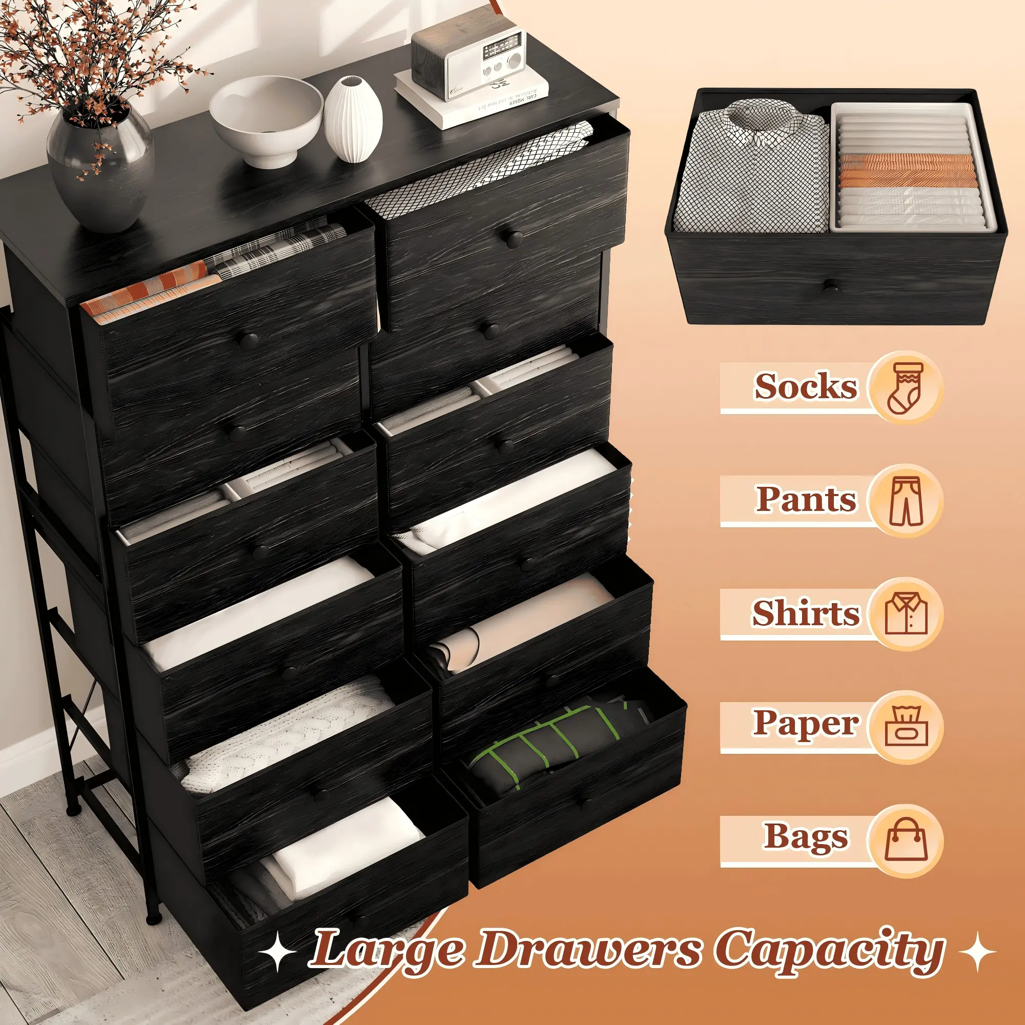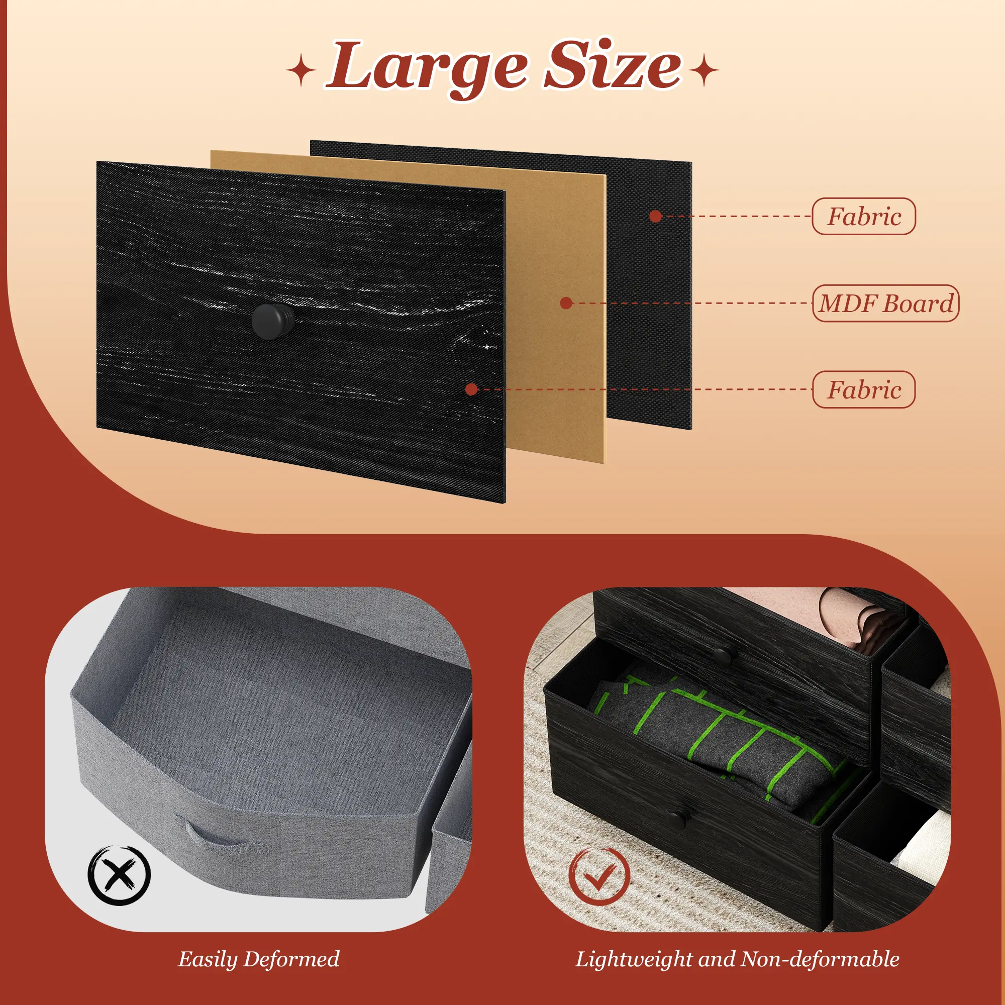 ·【Modern & Durable Design】- This dresser combines stylish black fabric drawers with a waterproof wood top and metal frame, ensuring both durability and elegance. Its sleek design fits perfectly into modern home decor, whether in the bedroom, living room, or hallway.