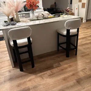 Featuring clean lines and a sleek silhouette, these counter-height bar stools blend modern aesthetics with versatile charm. The neutral white teddy fabric upholstery pairs seamlessly with the warm tones of the wooden legs (available in black or brown), creating a stylish focal point for any kitchen island, home bar, or dining area.