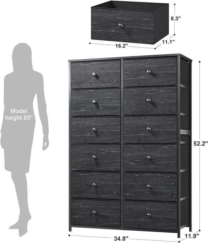 ·【52.3"H TALL DRESSER FOR BEDROOM WITH 12 FABRIC DRAWERS】We designed the 52.3"h tall chest of drawer for bedroom with 12 removable storage drawers.