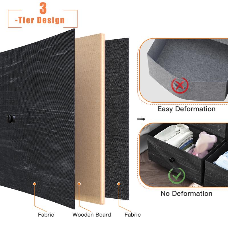 ·【"DOUBLE X" CROSSBAR SUPPORT DESIGN OF CHEST OF DRAWERS】 The "Double X" design on the back of the fabric dressers & chest of drawers provides additional stability and safety.