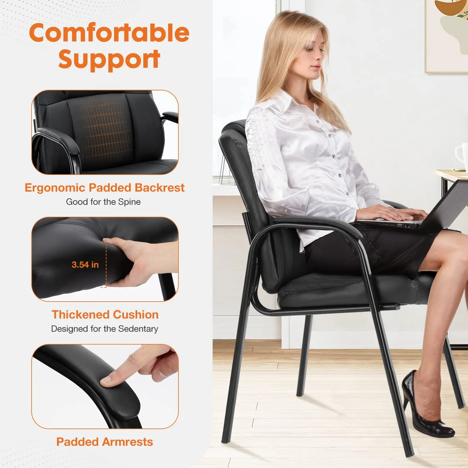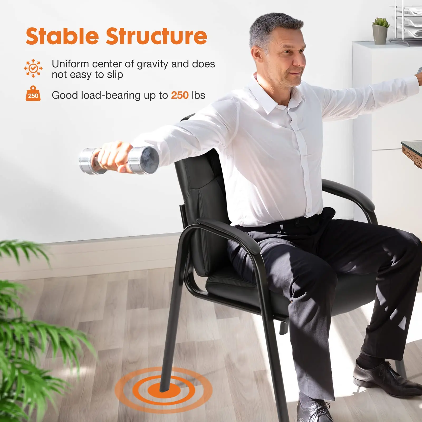 ·【Sturdy】This reception chair is designed with sturdy metal legs and can hold up to 250 lbs. This office guest chair without wheels has a stable structure, a uniform center of gravity, and is not easy to slip.