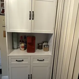 ·Spacious open compartment with cable management holeThis tall bar cabinet offers abundant private space for kitchen items and extra counter space for food preparation and coffee making.