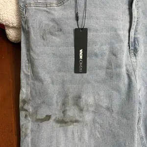 This is exactly how my jeans arrived to me also took almost a extra week to arrive to my house I believe it’s mostly to do with the shipping company however i am very disappointed cause these are very nice jeans and I was super excited