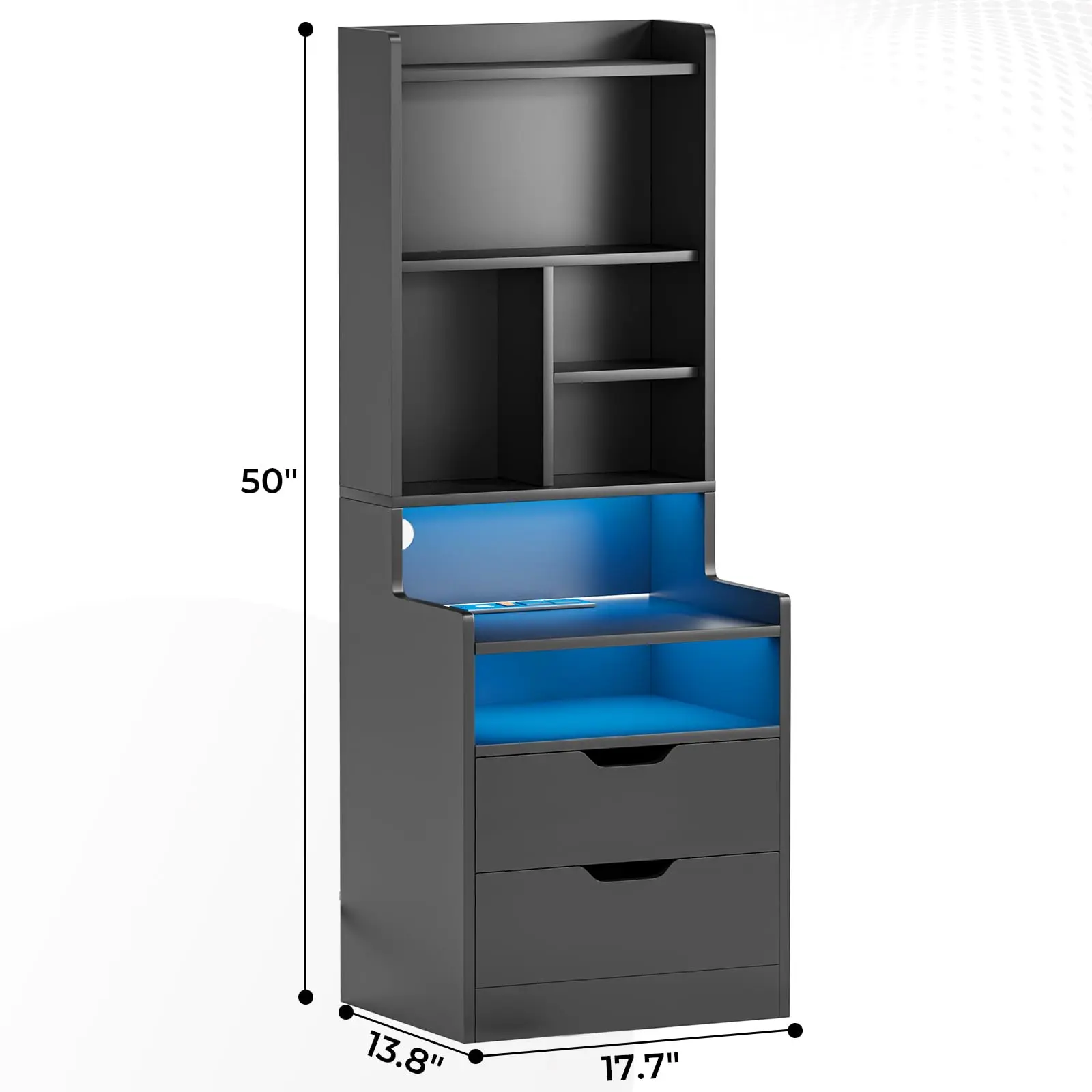 Both table top and open storage are equipped with RGB LED lights.The customer can customize the color,mode,style as they like.