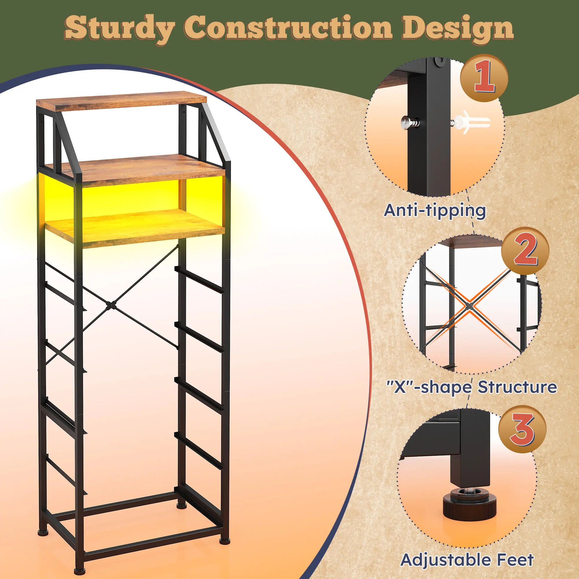·【Intelligent RGB LED Dresser】Embedded with an RGB light strip, this dresser organizer offers 21 static color options and 22 dynamic modes, along with adjustable brightness. Explore the possibilities to tailor the illumination according to your mood and surroundings, adjusting the brightness, color, and pattern freely. This LED bedroom furniture becomes a standout feature in your bedroom, infusing it with a touch of technology and an ambiance of sophistication.