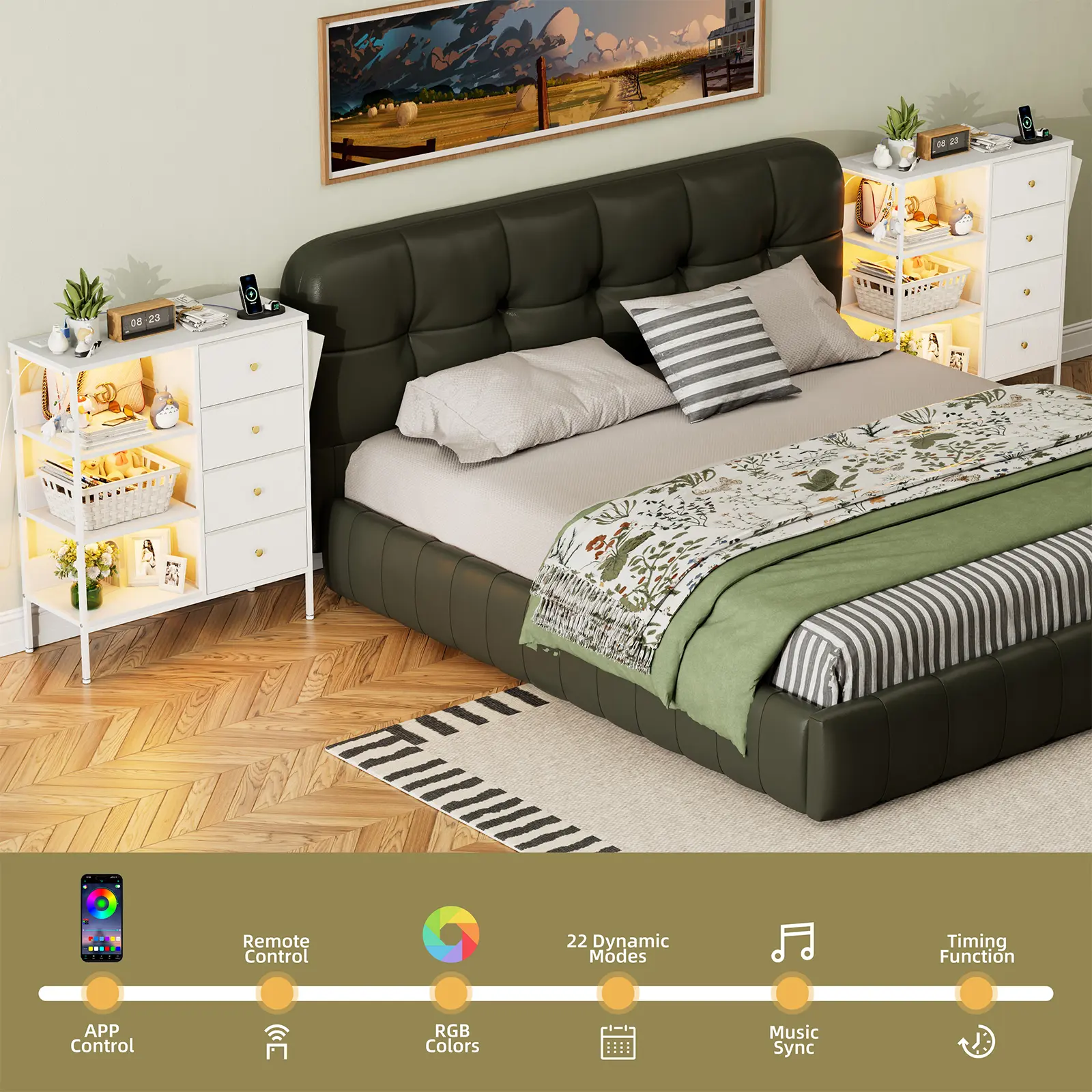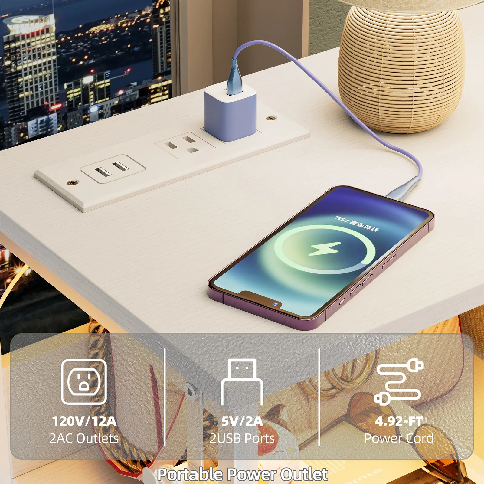 🔌 Convenient Charging Station – Integrated USB ports and outlets let you charge phones, tablets, or smartwatches easily.