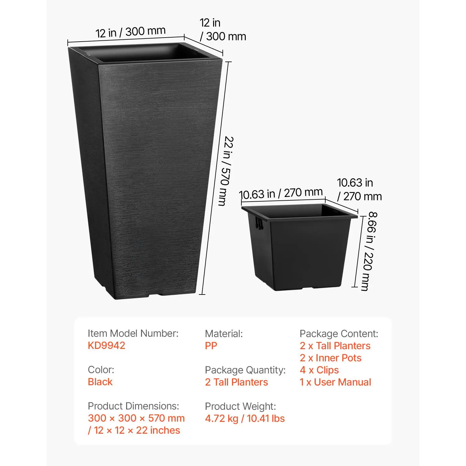 • Durable PP Material: Crafted from sturdy PP material, this tall outdoor planter is designed to withstand harsh weather conditions like sun exposure and wind while avoiding fading and cracking. Made for outdoor use, it delivers long-lasting reliability and style while being recyclable - an ideal choice for eco-conscious users.