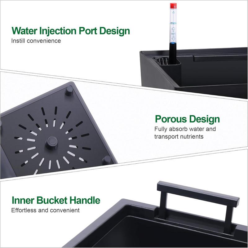 Integrated Drainage & Automatic Watering Features: Each flower pot is designed with drainage holes and a bottom water reservoir to promote proper drainage and minimize the risk of root rot. When the water level drops below the plant roots, the automatic watering system provides moisture to your plants, allowing for effortless and worry-free gardening
