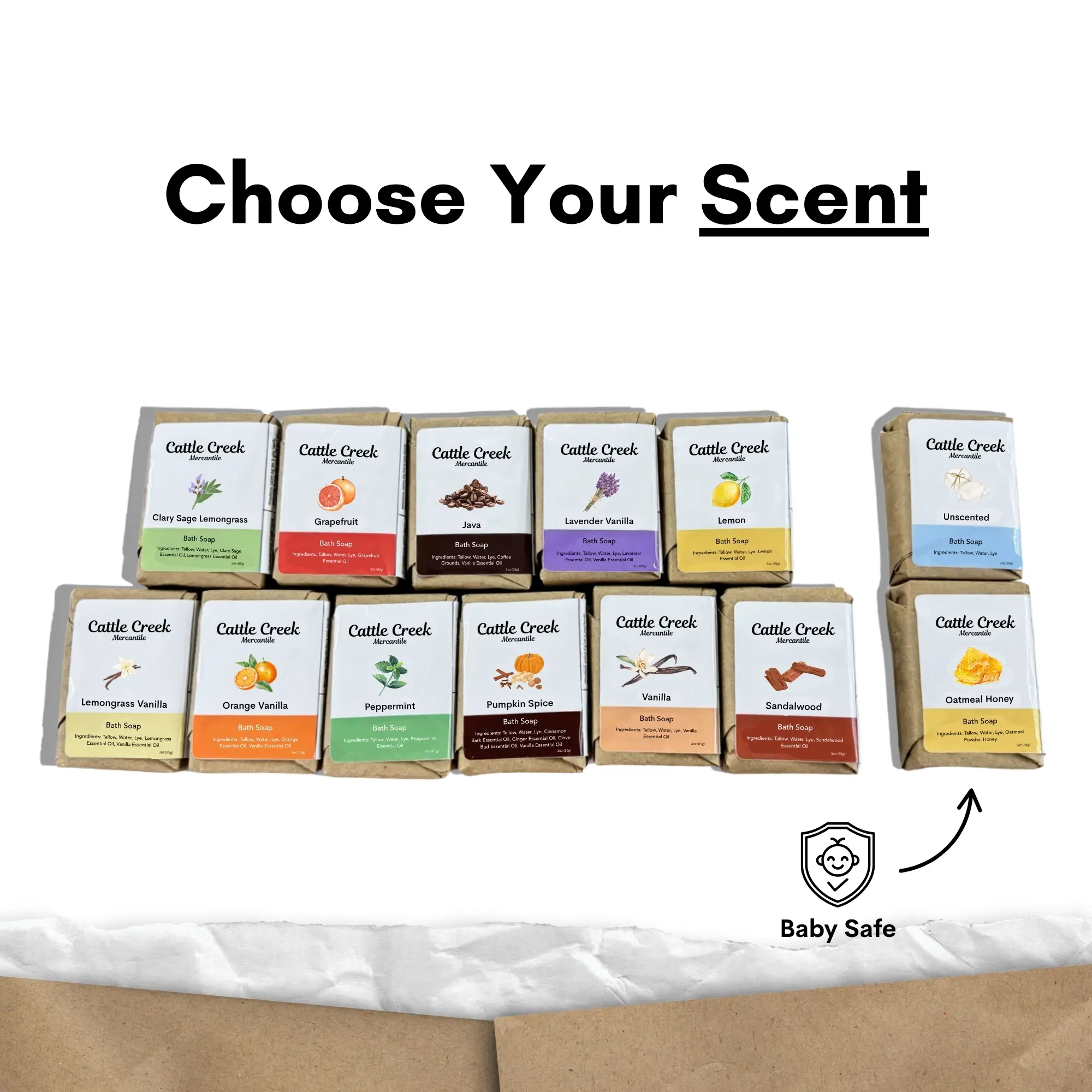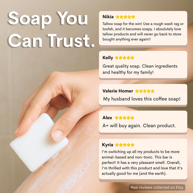 Our soap is made from grass-fed beef tallow, lye, water, and essential oils—nothing more. Tallow is rich in vitamins and fatty acids that closely match the skin’s biology, making it highly nourishing and gentle for sensitive skin.