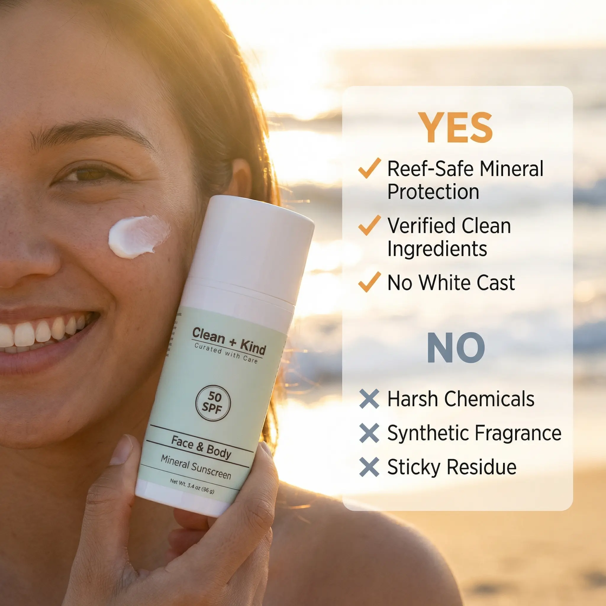 Excellent product. No white film and works great under my makeup. Happy to have a natural sunscreen with zero chemicals.