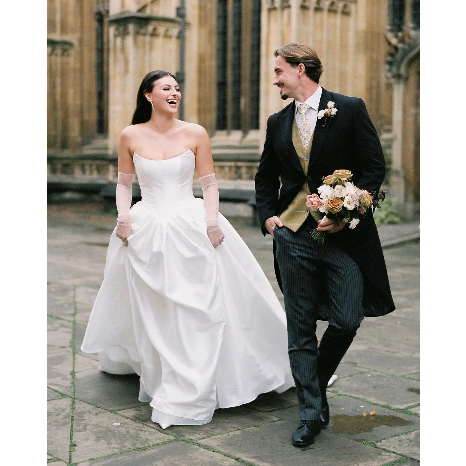 ·Bride in Photos wearing shorter length alone.