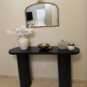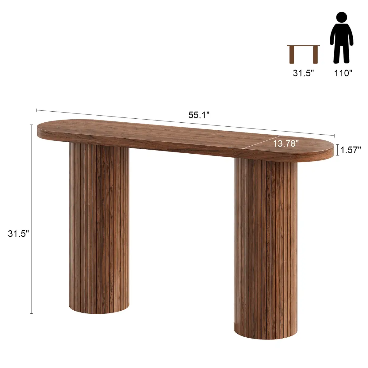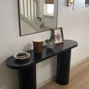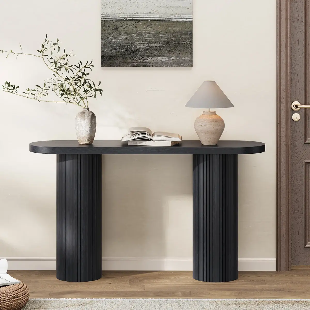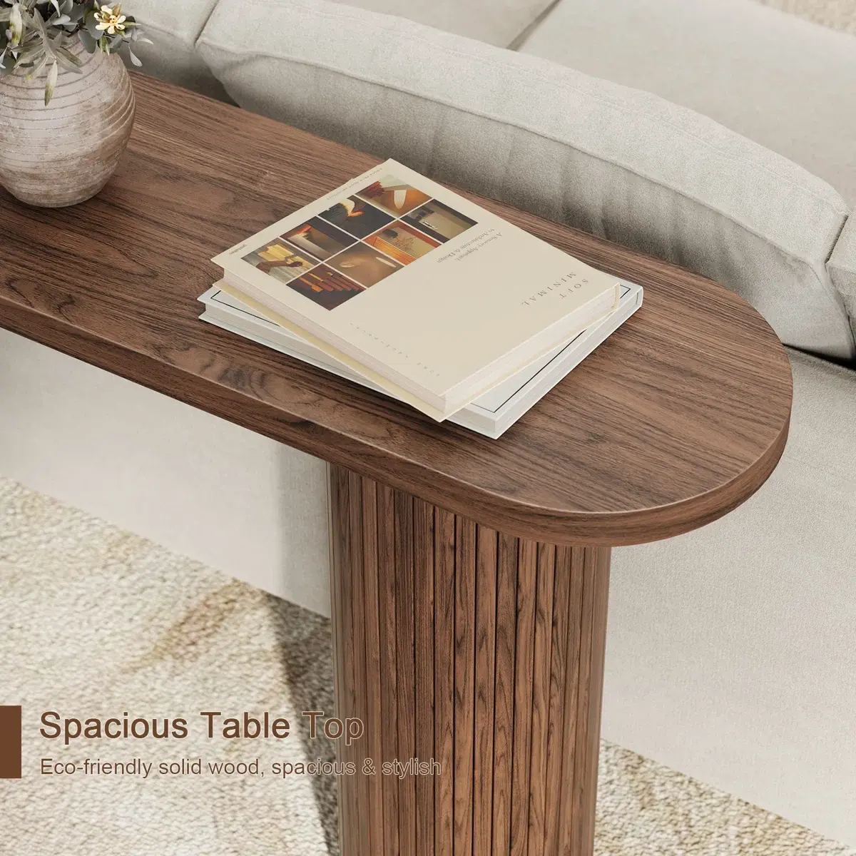 Step into a space where time slows down—this tambour entry console table exudes quiet nostalgia, its wood surface whispering stories of sunlit forests and artisanal hands. Its elliptical shape and wide tambour legs create a simple silhouette that works well in entryways, living rooms, or home offices. Against crisp white walls or moody backdrops, it becomes a bridge between nature’s raw beauty and mindful modern living.