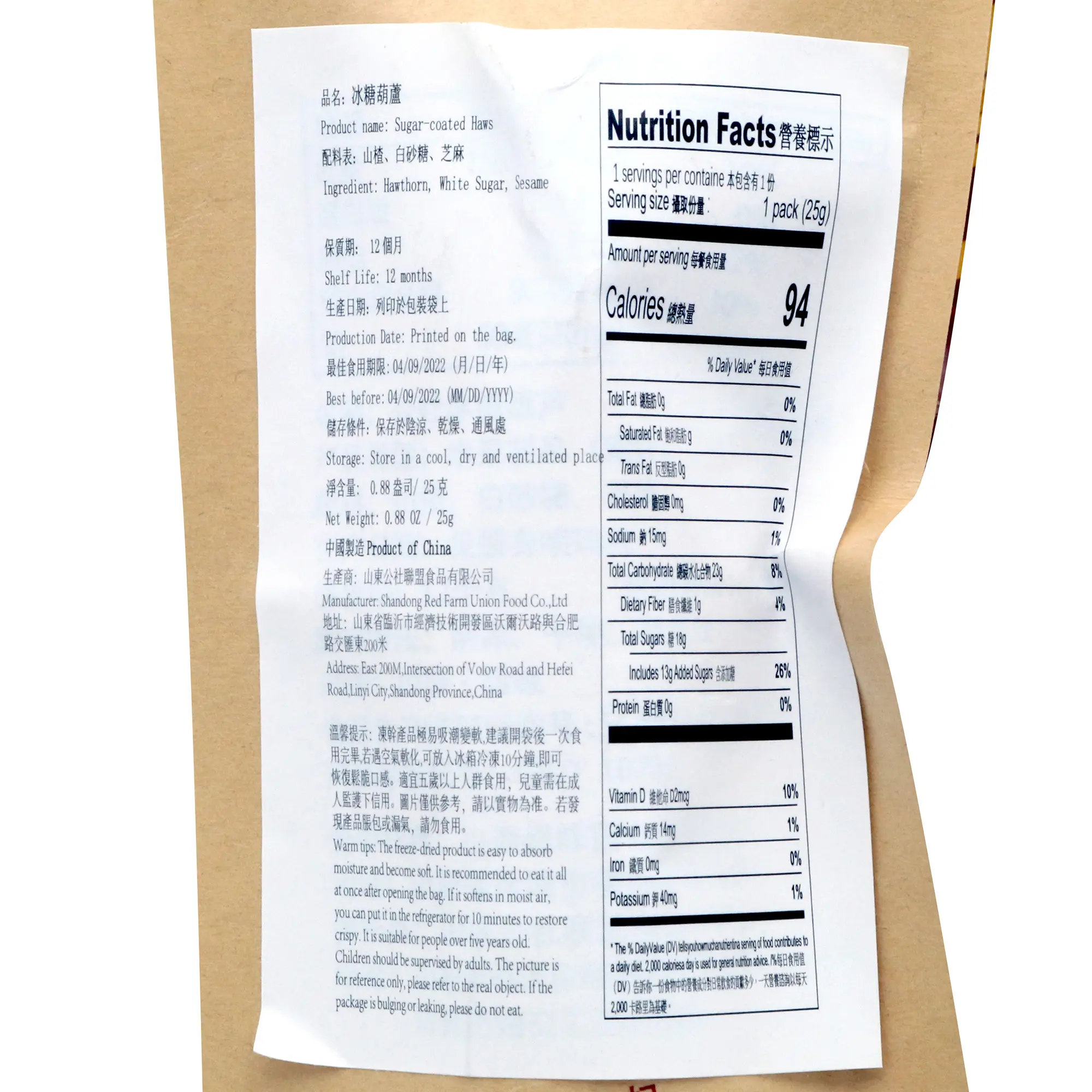 IngredientsHawthorn, white sugar, rock sugar, sesame