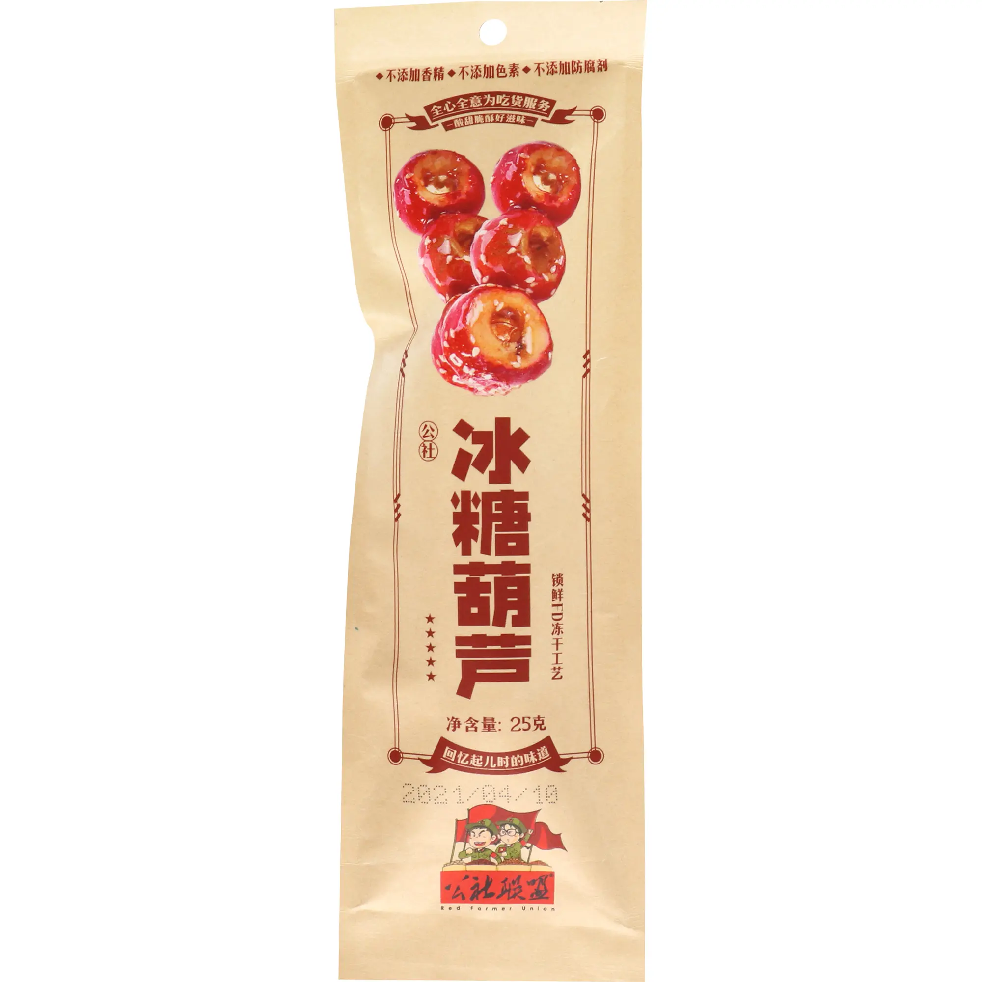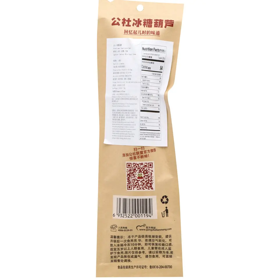 Gong She Lian Meng Tanghulu Sugar Coated Hawthorn Candy is a classic Chinese snack. It features hawthorn berries coated in a hard, crisp sugar layer. This 25g treat combines the tartness of hawthorn with the sweetness of sugar, offering a delightful flavor contrast. Perfect for those who enjoy a balance of tastes.