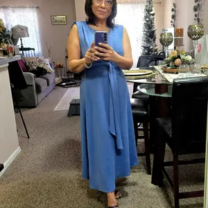 The dress color is beautiful but it is poorly made. The pleats on the chest are uneven; the left side has more pleats than the right side and the sides of the dress is cut too wide/open; the sides do not cover my boobs.