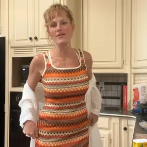 Love this dress. Even at my age it hides a lot of imperfections and is very stretchy. I went down to a medium and I normally wear a large top