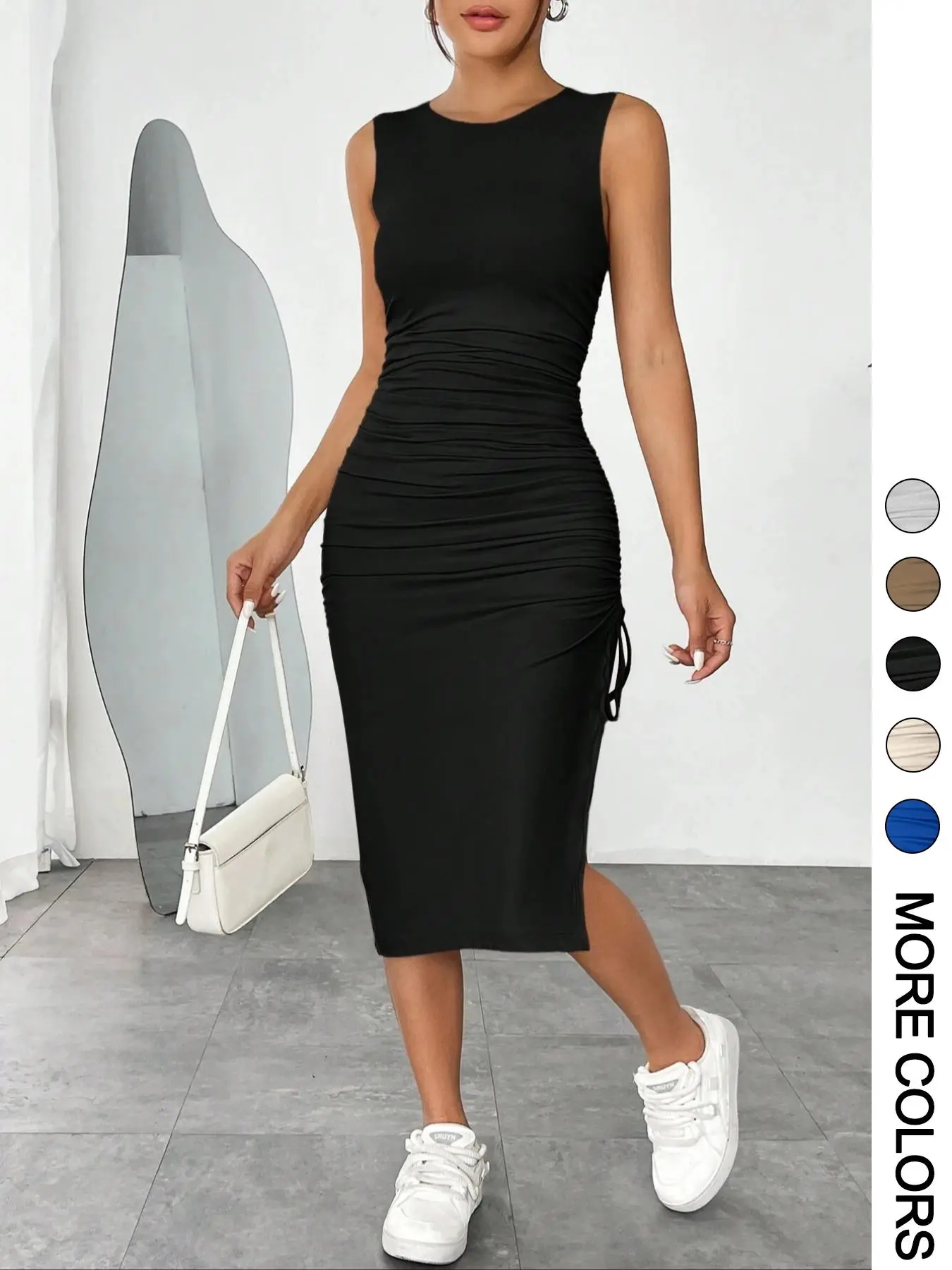 What can I say, this dress is a must purchase! I have 2 different variations. One with buttons down the front and this one. The fabric is amazing and buttery soft. The stretch is great. And the side tie, boom! Just the right amount of options for work to out for dinner!