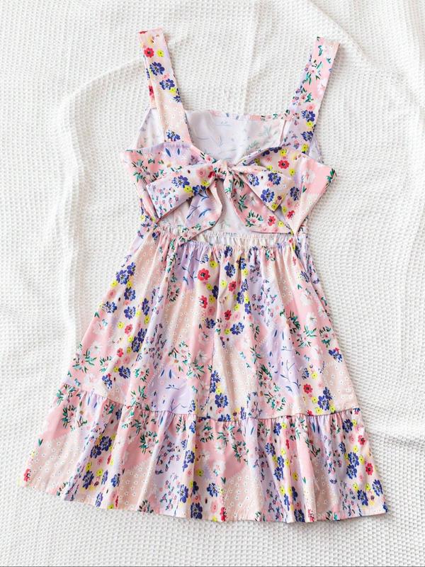 Women's Floral Print Backless Bow Tie Dress, Sleeveless Short Sundress, Casual Boho Chic, Boho Vacation, Fitted Summer Dress