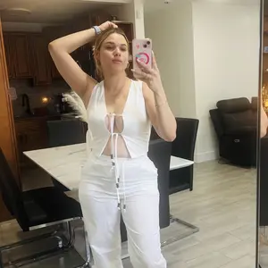Se ve muchísimo los senos y el pantalón queda grande, pero la tela me gustó muchísimo luce elegante