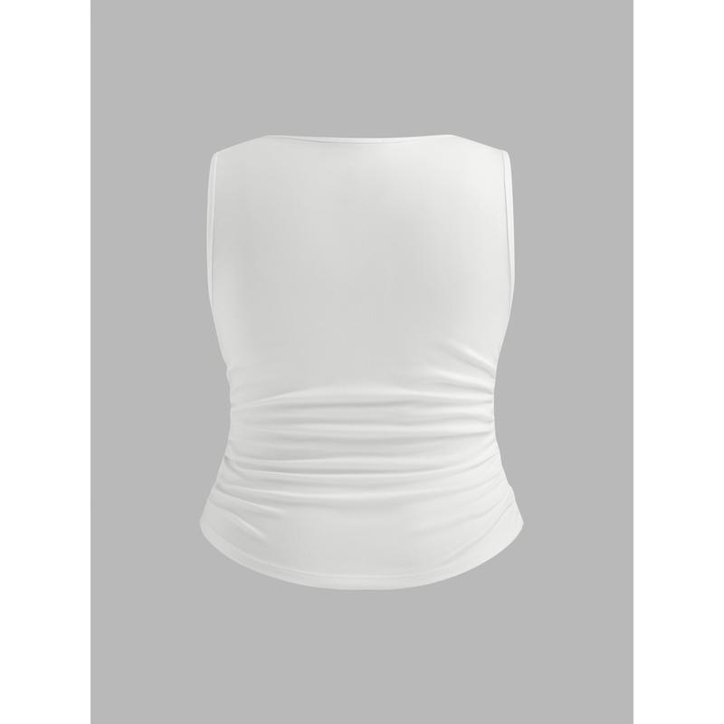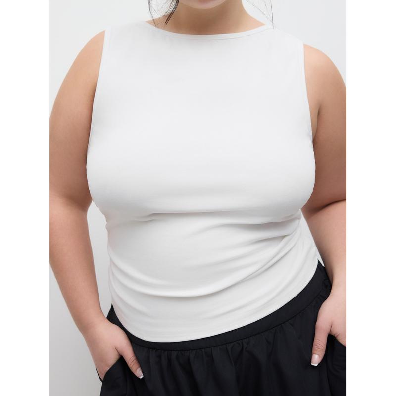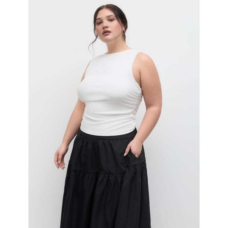 5. Cider [10 colors, size 0-24] Boat Neck Ruched Solid Tank Top Curve & Plus