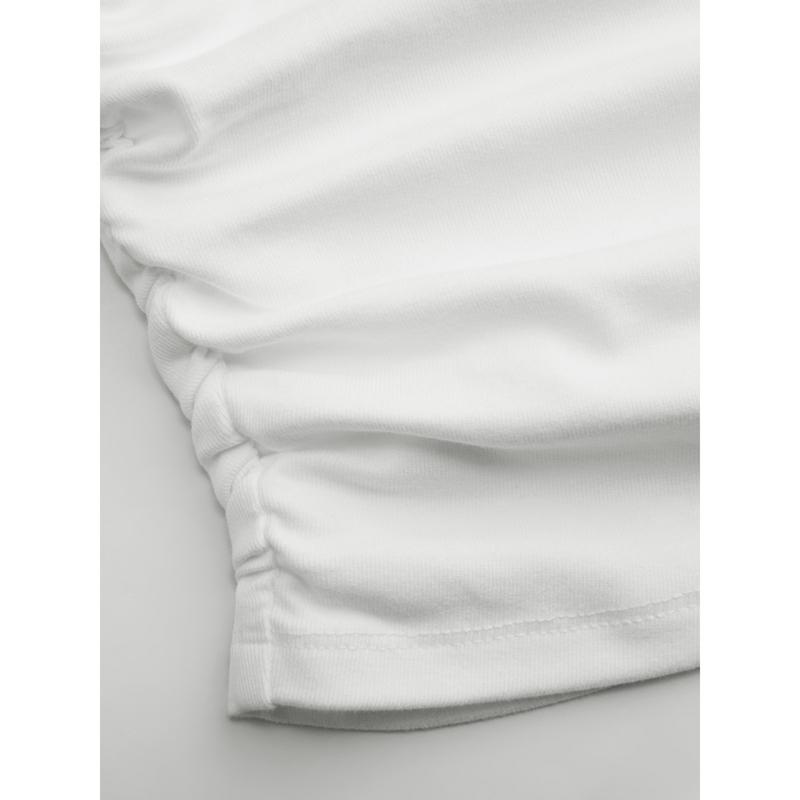 Love the soft fabric and cropped fit. The ruched detail is very cute too.