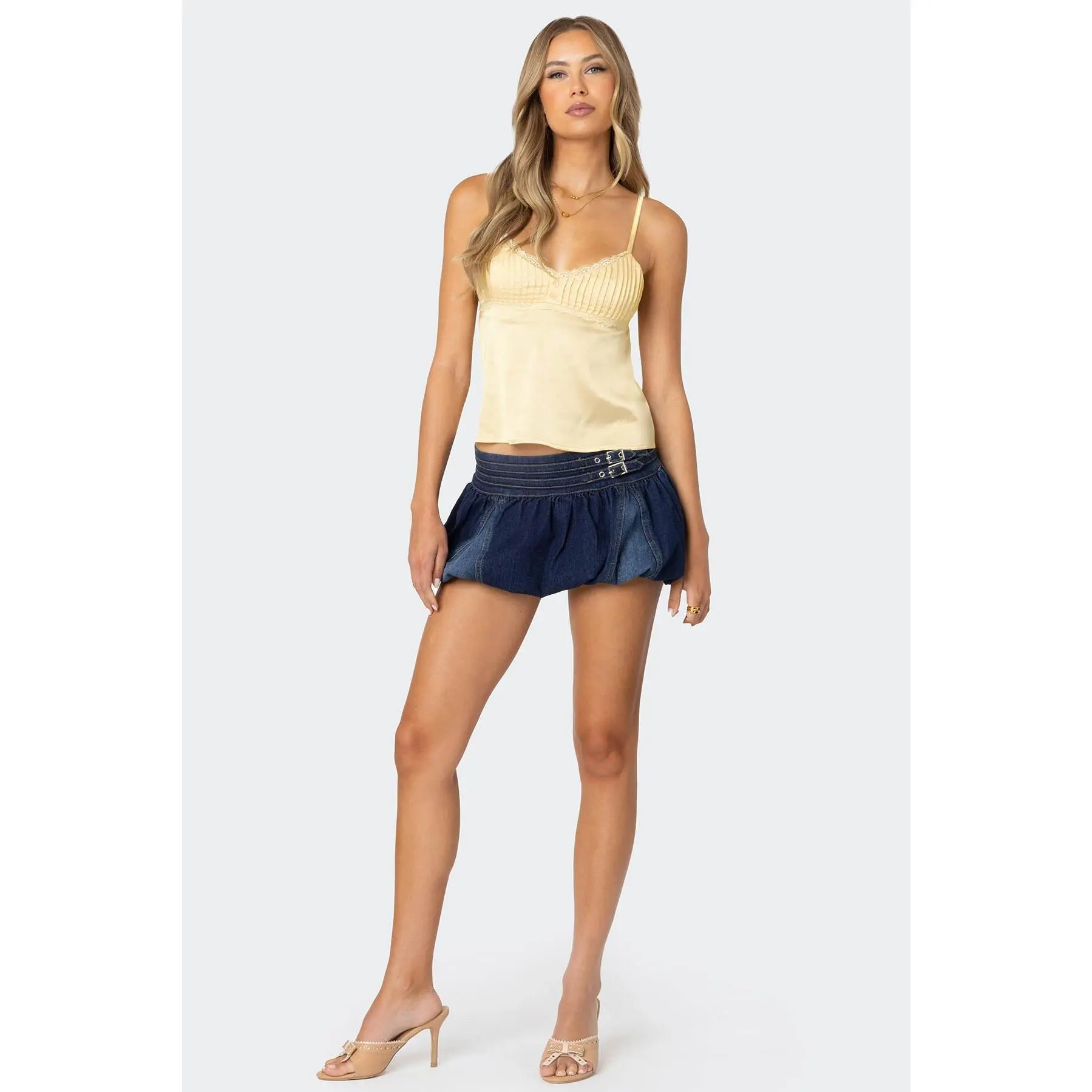 I recently purchased a yellow satin top and I am absolutely in love with it! The fabric is incredibly smooth and has a beautiful sheen that catches the light perfectly. It's lightweight, making it ideal for both casual and more formal occasions.