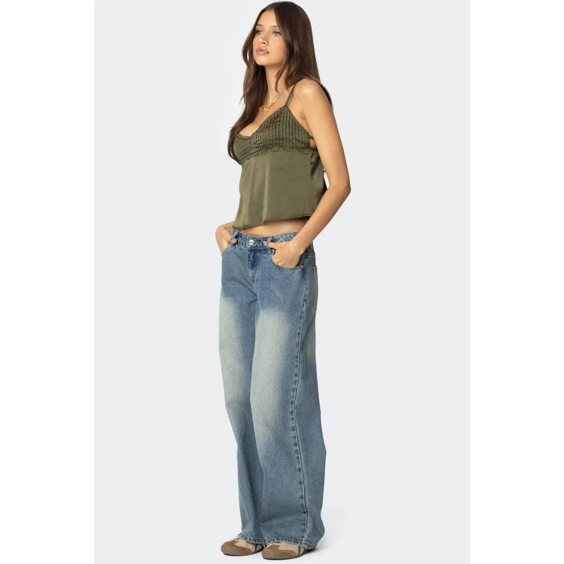 5. Blanca Satin Effect Lace Trim Tank Top