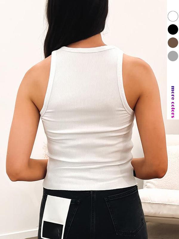 Women's Solid Ribbed Tank Top, Casual Sleeveless Round Neck Top for Daily Wear, Ladies Clothes for All Seasons, Comfortable Vest #falltops #bralette #tanktops #shapewearbodysuits #tanktopundershirt #workouttop #womensclothingtiktokshop #womenshirt #fittedtanks #trendytops