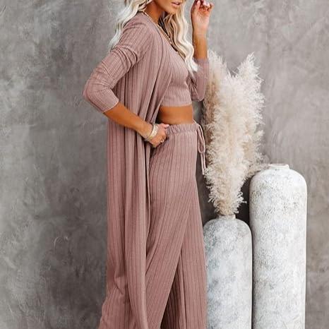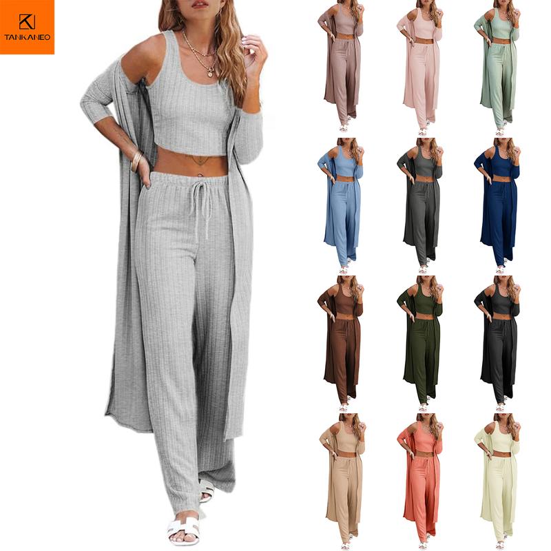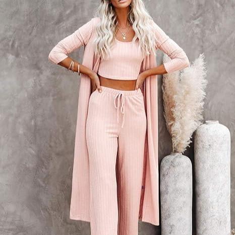Feature: Womens 3 piece lounge sets consist of a scoop neck crop tank top, wide leg pants and long sleeve cardigan. Also can be as a pajama set, it is so comfy and flatting. Not too thick but has a good level of thickness for the perfect level of comfort and warmth.
