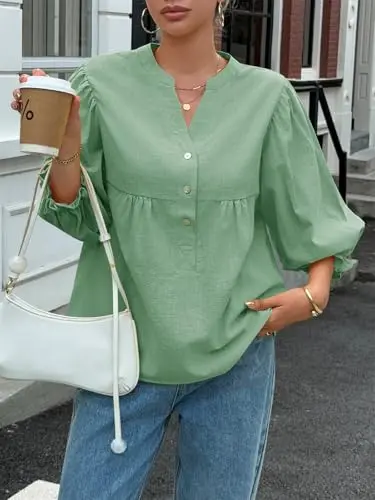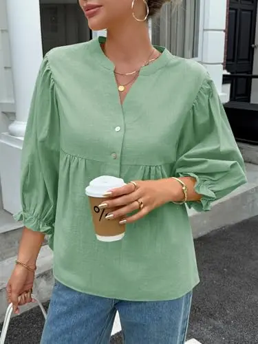 ·Adorable Design: With playful puff sleeves, an elegant v neck and button down design, plus charming ruffle details, these tops are perfect for a picnic in the countryside or a weekend brunch with friends