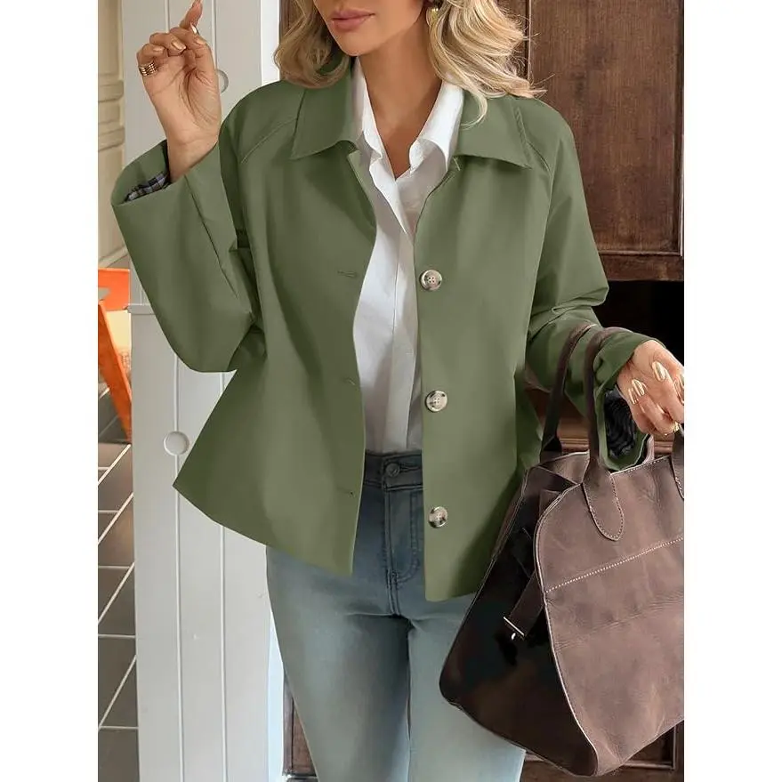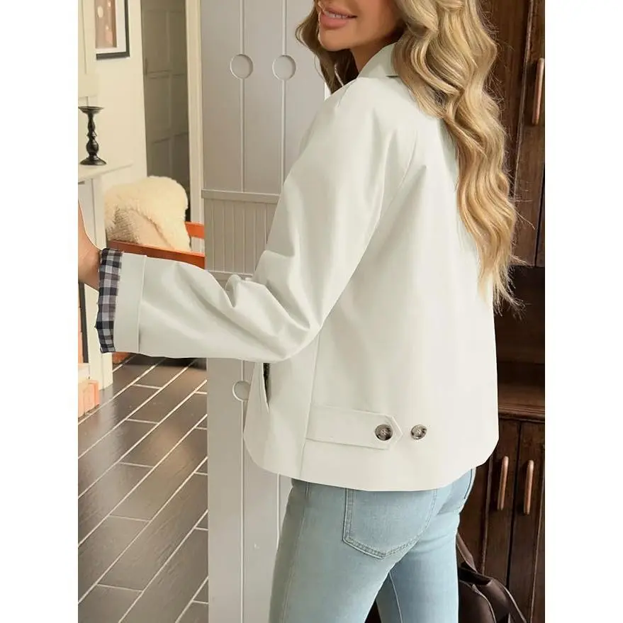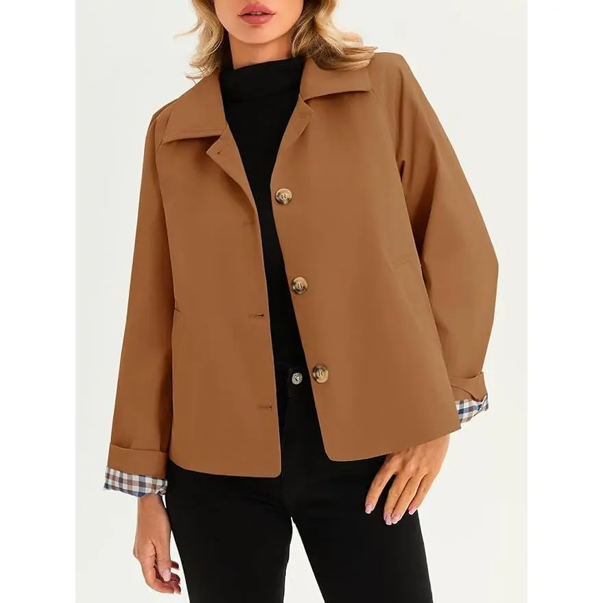 Stylish Design --- The cropped and loose fit style with plaid lining exudes modern elegance. Lightweight jacket for women features lapel collar, long sleeve, single breasted, two side pockets, loose fit design. Great for a coffee date or a museum visit