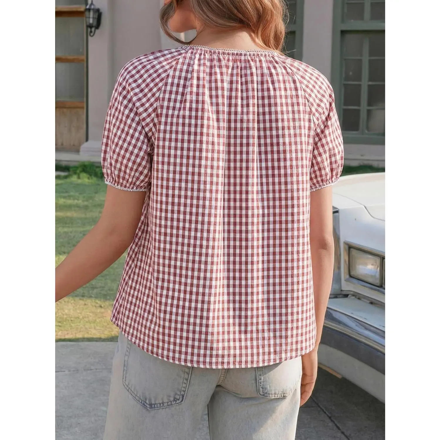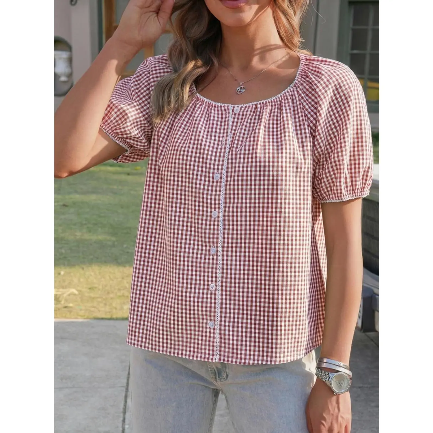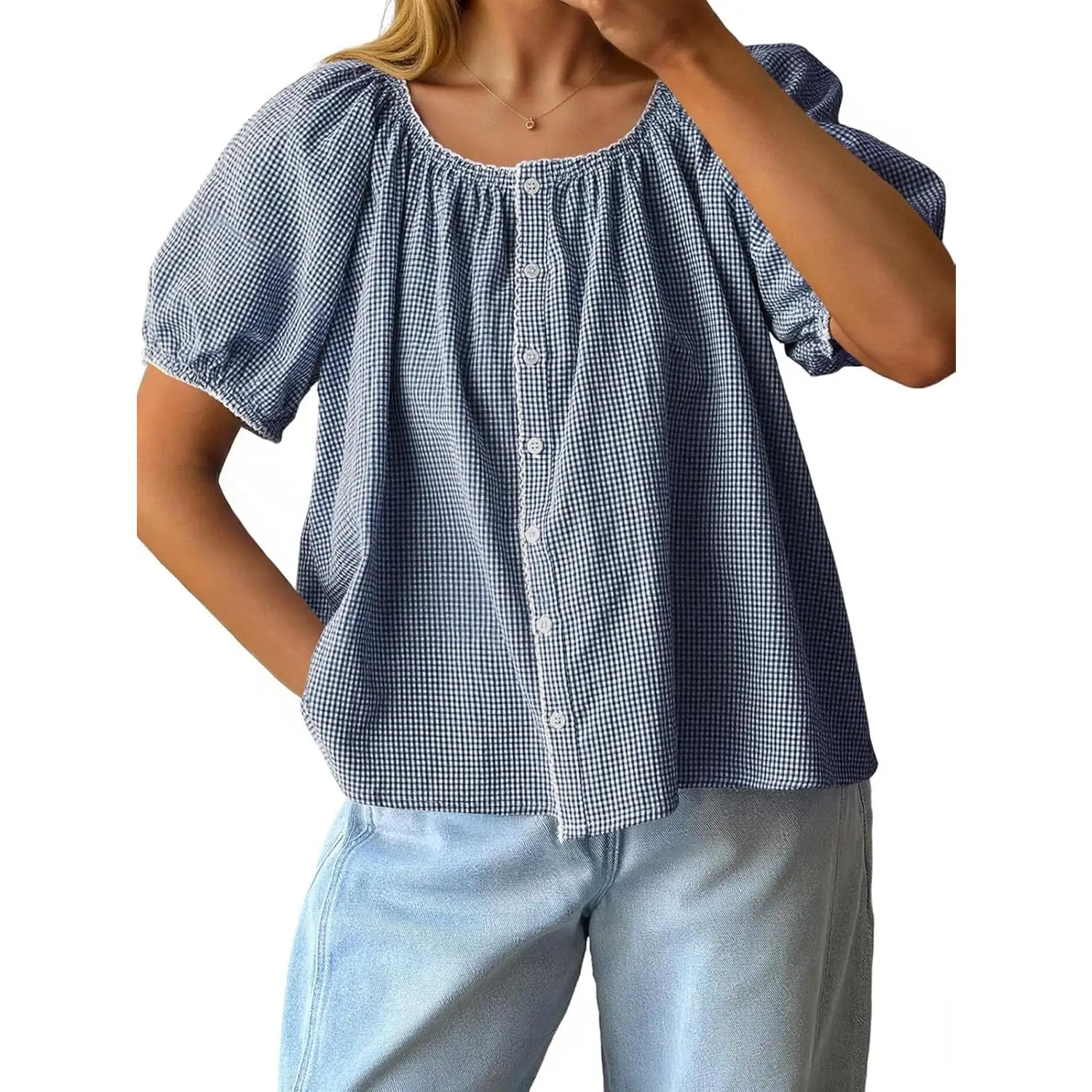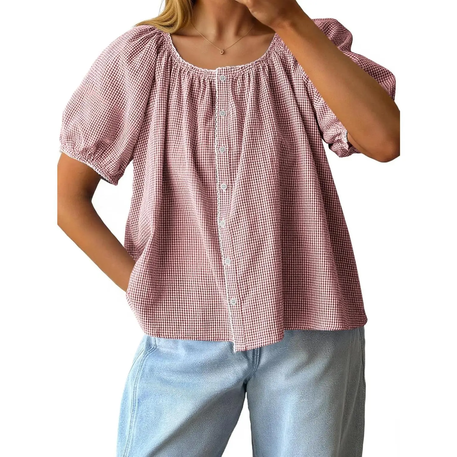 Classic Gingham Plaid Design: These women's button-down shirts feature a timeless gingham check pattern that blends retro charm with modern flair