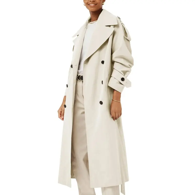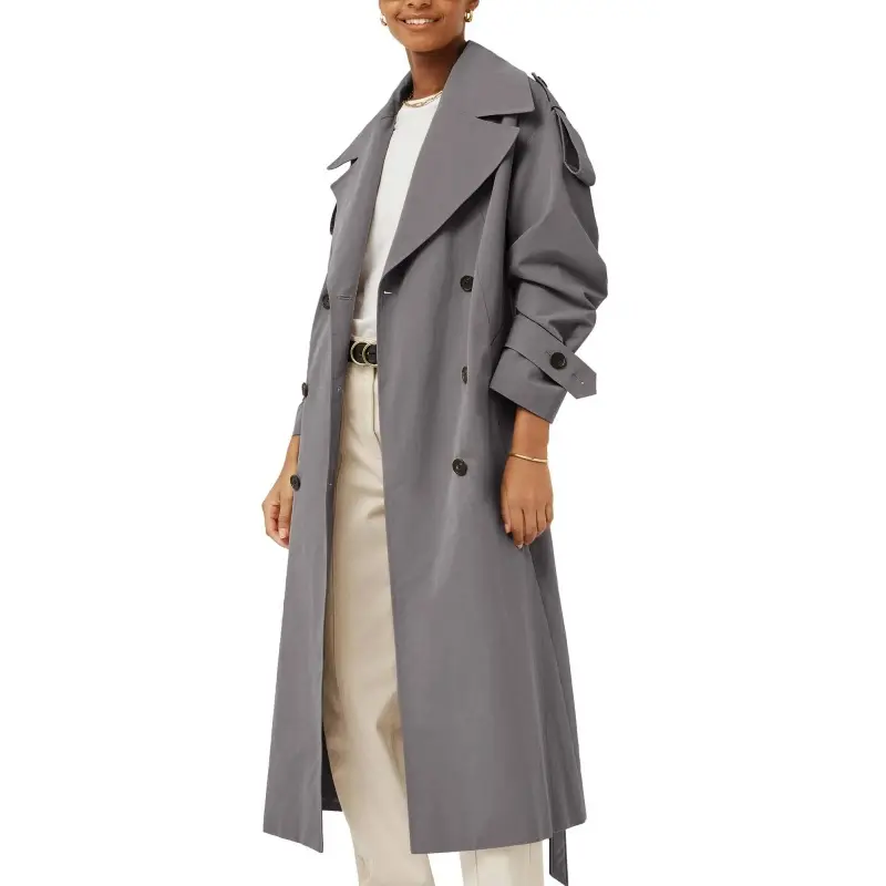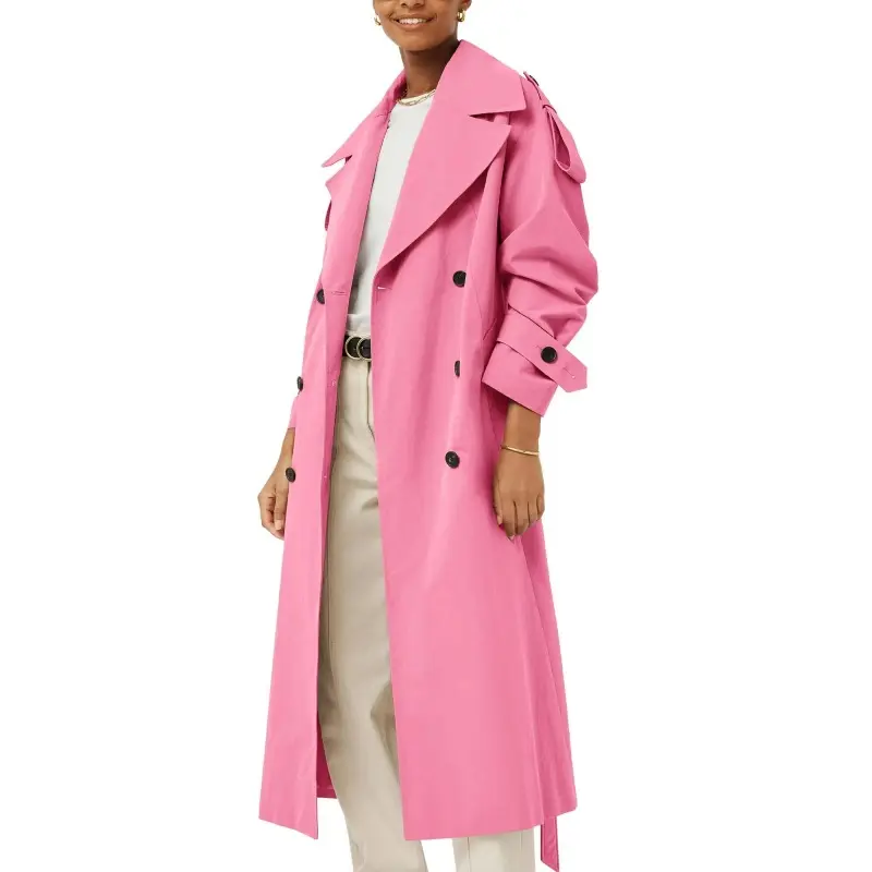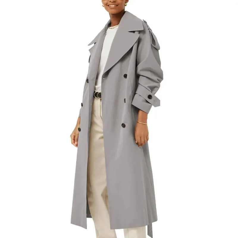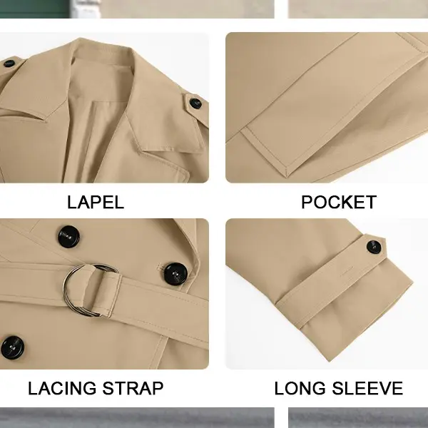 ·Feature: Long sleeve trench coats for women, long length, modern dropped shoulders, 2 side pockets, adjustable buttoned, and it comes with a self-fabric belt featuring a metal buckle, will perfectly emphasize your waist.
