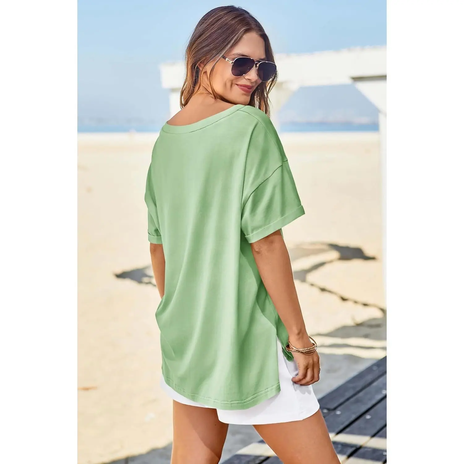 ·Fashion V Neck: These womens oversized tshirts feature a stylish v neck ,drop shoulder and cuffed short sleeve design, suit for the 2025 spring summer fashion season