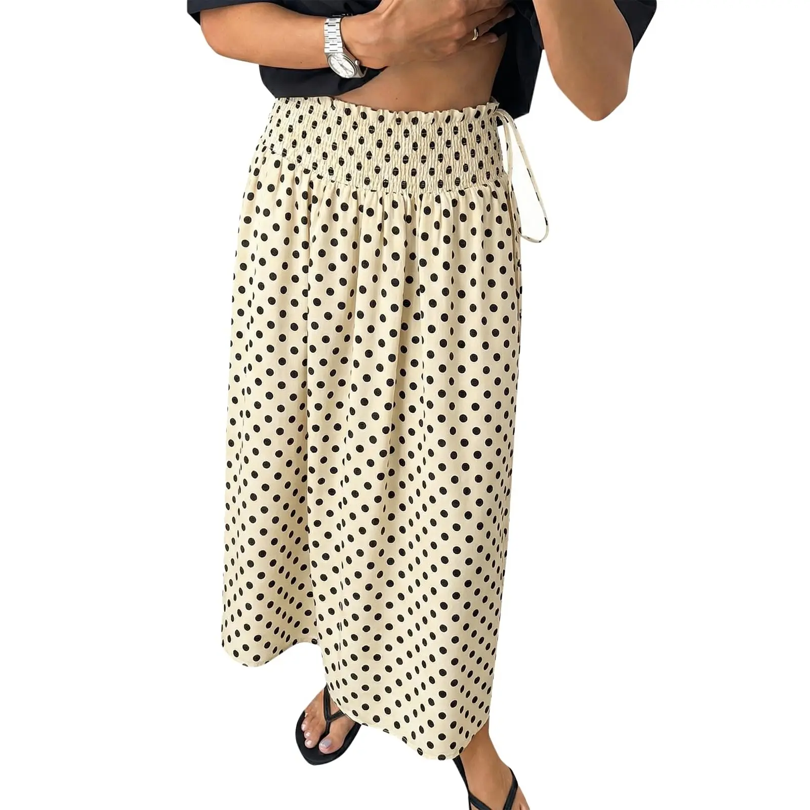 ·Retro Polka Dot & Flowy Design: The whimsical polka dot print brings retro nostalgia, while the flowy silhouette drapes beautifully over legs for carefree boho vibes