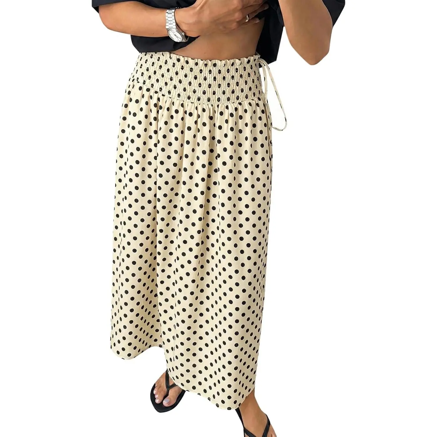 ·Soft Layered Fabric: Women's polka dot maxi skirts use a polyester and elastane shell for ultra soft, stretchy comfort with gentle wave-like flow. The polyester lining offers full opacity, breathability, and skin friendly coverage for all day ease