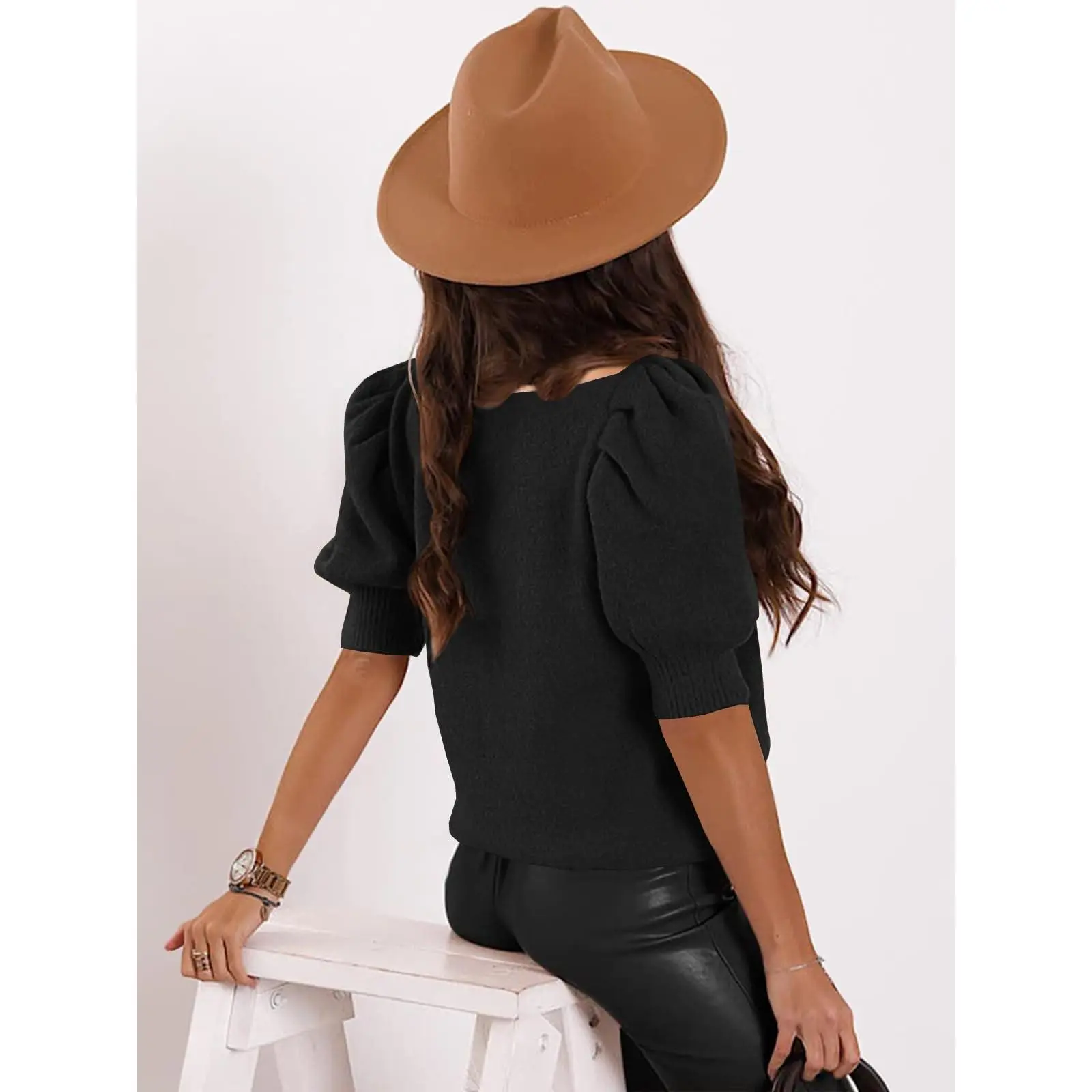 ·MATERIAL: The puff sleeve tops for women is made of soft, high quality knitted material, it is lightweight, stretchy, skin-friendly and comfortable wearing.