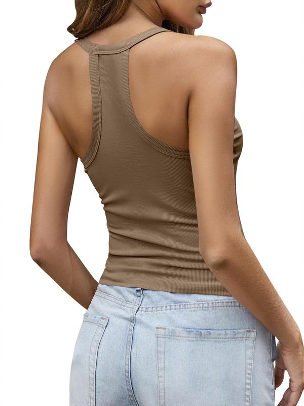 ·Feature: Racerback design and a slim-fit silhouette, this halter top is perfect to show off your curves and creating a feminine look. Casual basic cami tank top, solid color, relaxed fit, form-fitting