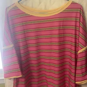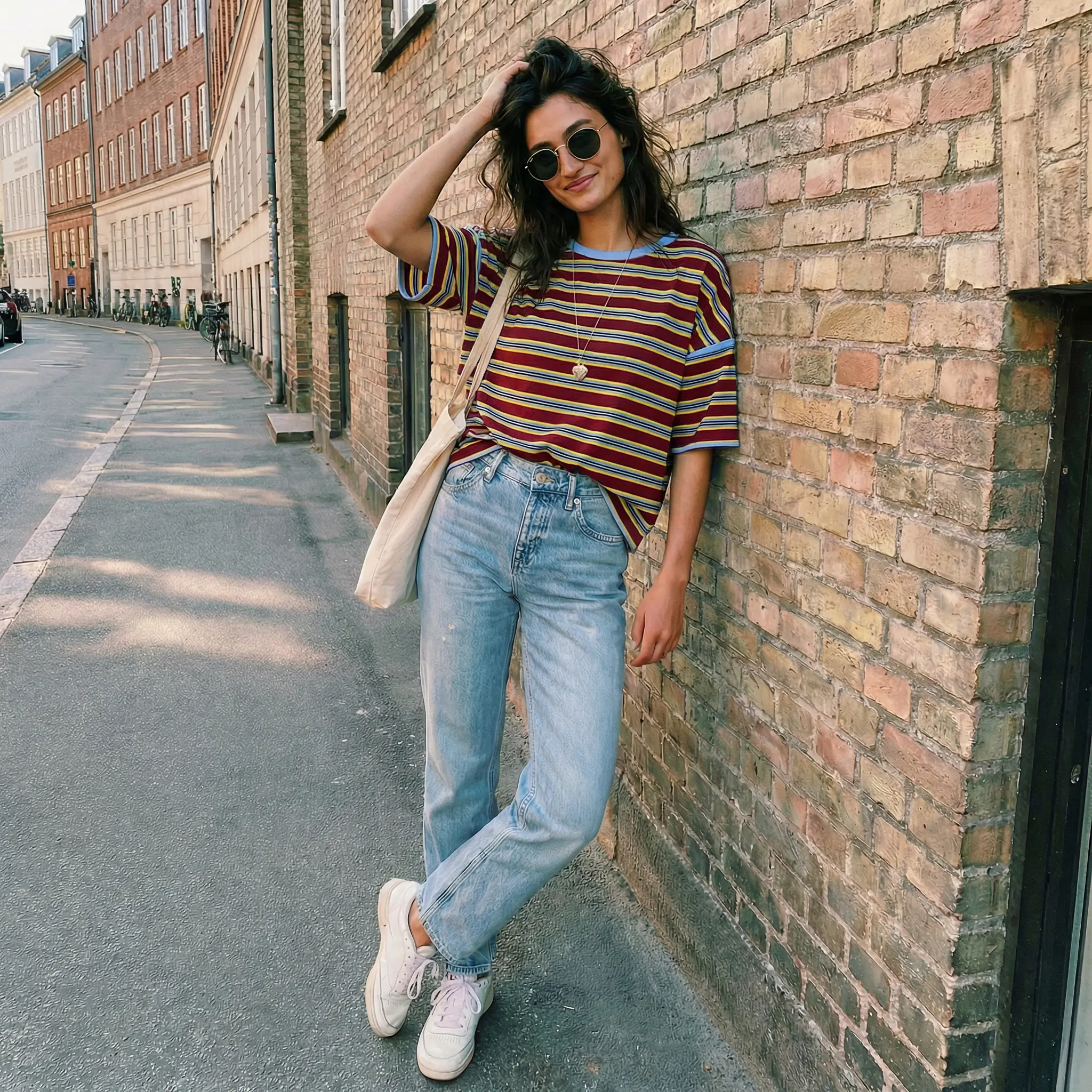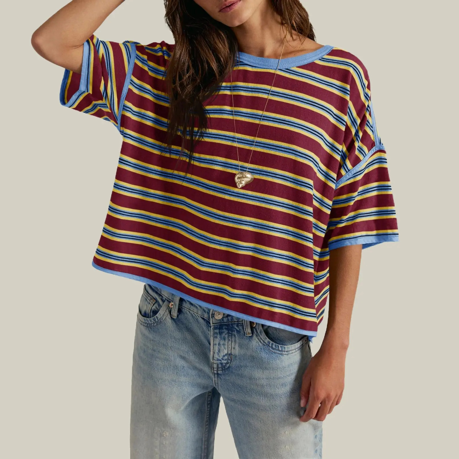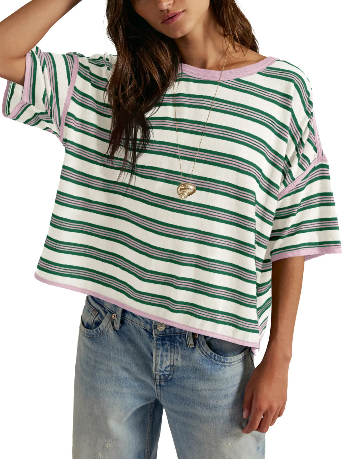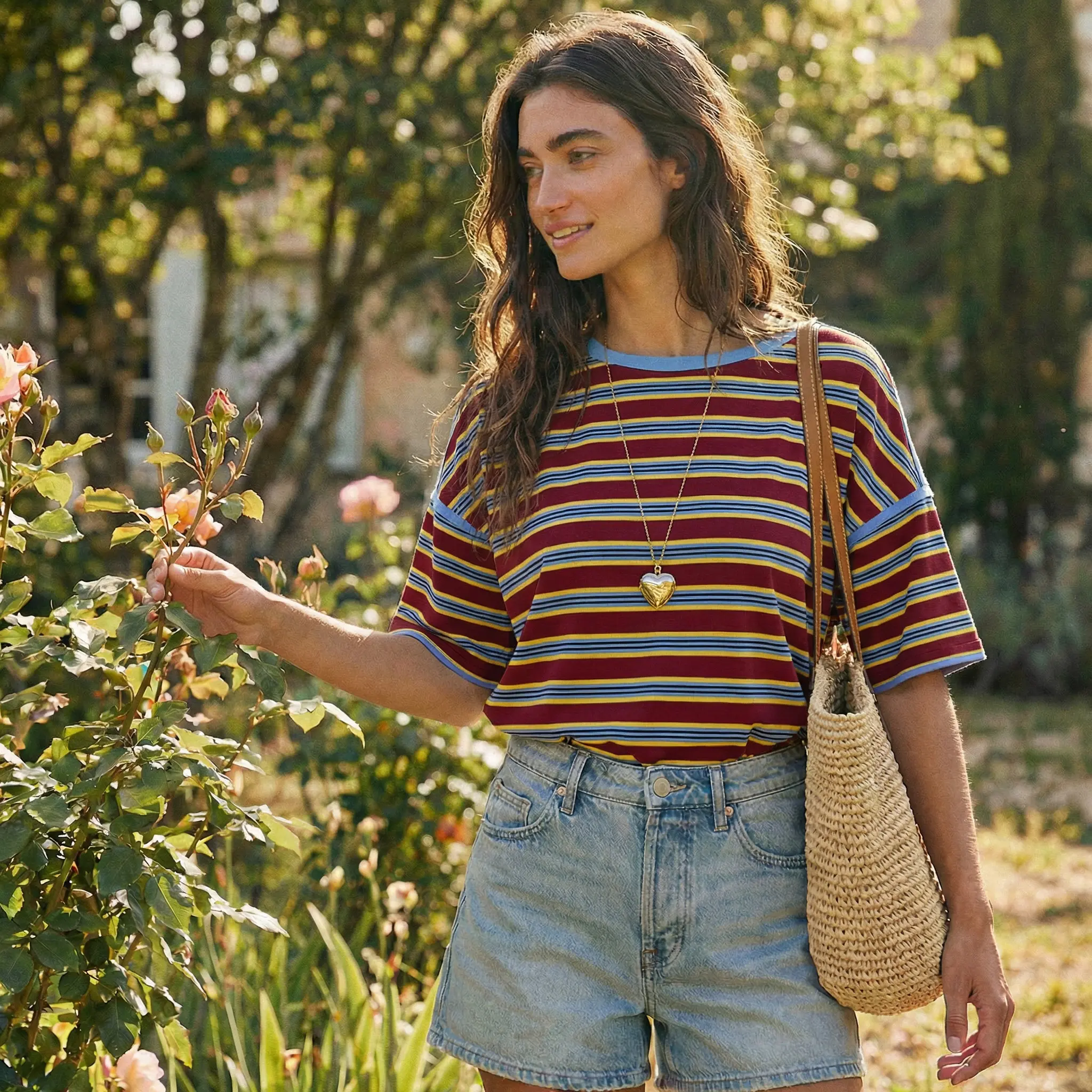 Pair this tee with jeans for a casual look. The loose fit and striped design make it a versatile choice for various occasions. Perfect for layering or wearing alone. 🌟