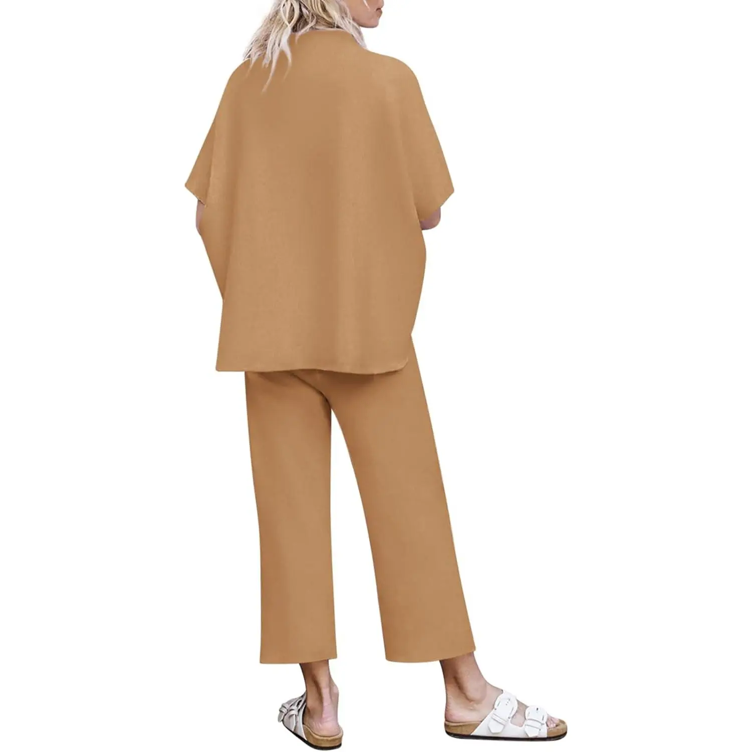 Two Piece Sets for Women Summer Outfits 3/4 Batwing Sleeve Capelet Pullover Tops