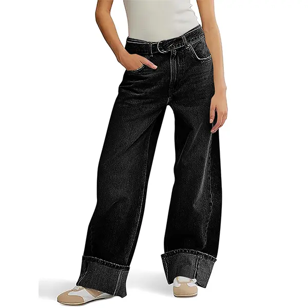 These jeans feature a high-waisted design, providing a flattering fit. The wide leg style offers a comfortable and stylish look. Perfect for casual outings, these jeans are a versatile addition to your wardrobe. 🌟