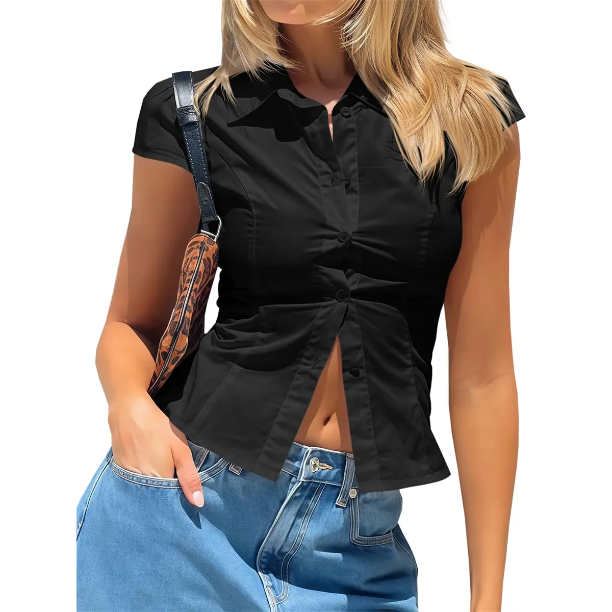 ·The Tankaneo Women Short Sleeve Button Down Shirts offer a Y2k slim fit design. 🌟