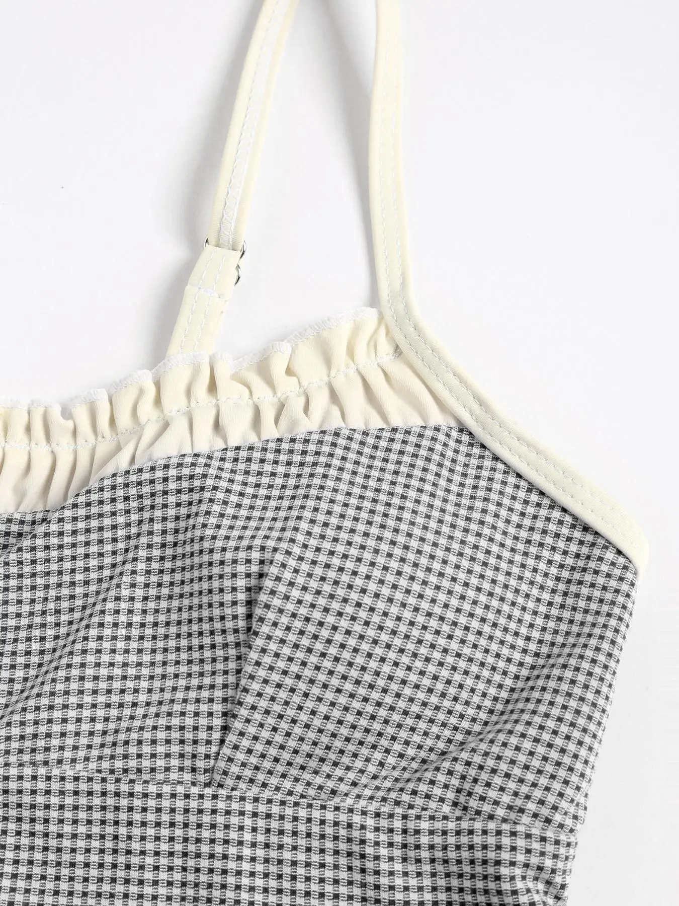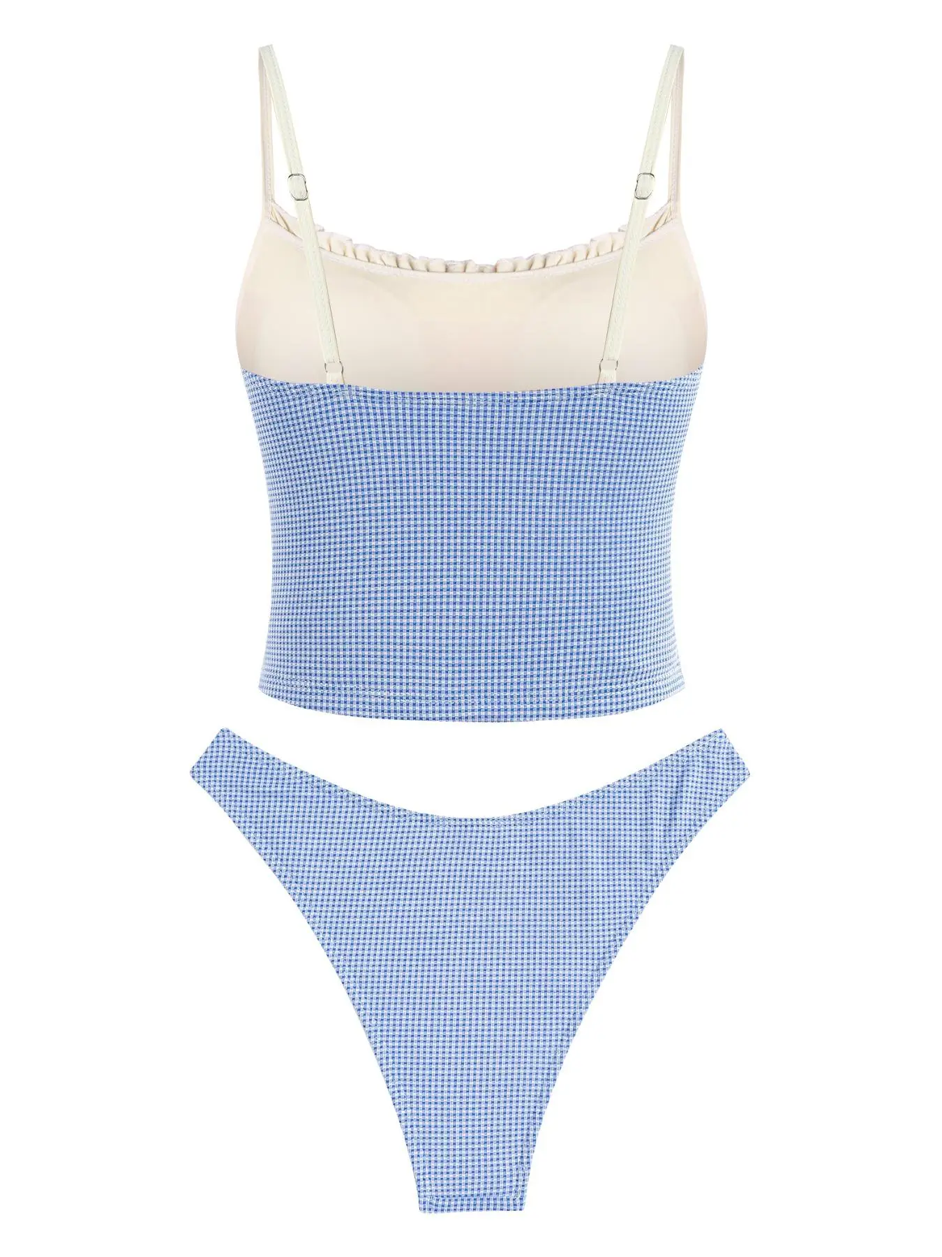 Cute Gingham Ruffle Cami Tankini Set π Coquette Aesthetic Two Piece Swimsuit with Bow Details | Retro Plaid Bathing Suit for Women | Summer 2026 Beachwear Vacation Outfit Summer Vacation Aesthetic High Cut
