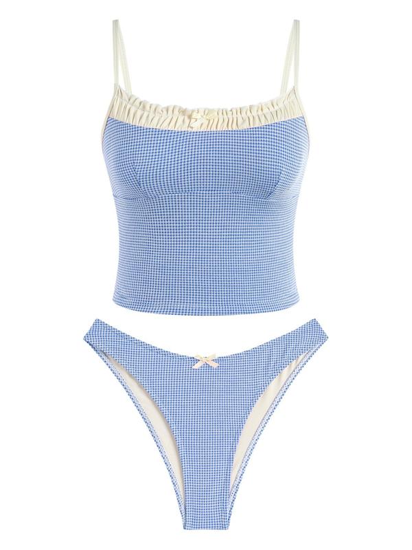 Stitch was loose and a little undone looking on the top. The bottoms run a little small if you have wider hips. Over all fabric felt very soft, cut is flattering. I got asked multiple times the first time I worn this suit where I got it. Worth the buy for the price.