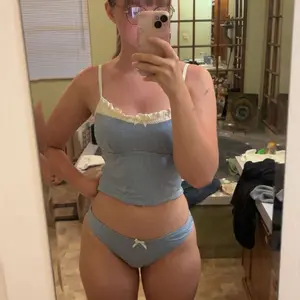 really cute, basically exactly what I expected, the materials are really nice. I love the little bows and the ruffles. The only thing it’s a little weird is the bra pads that are sewn in which I actually really like, they are small and you can see the shape a little