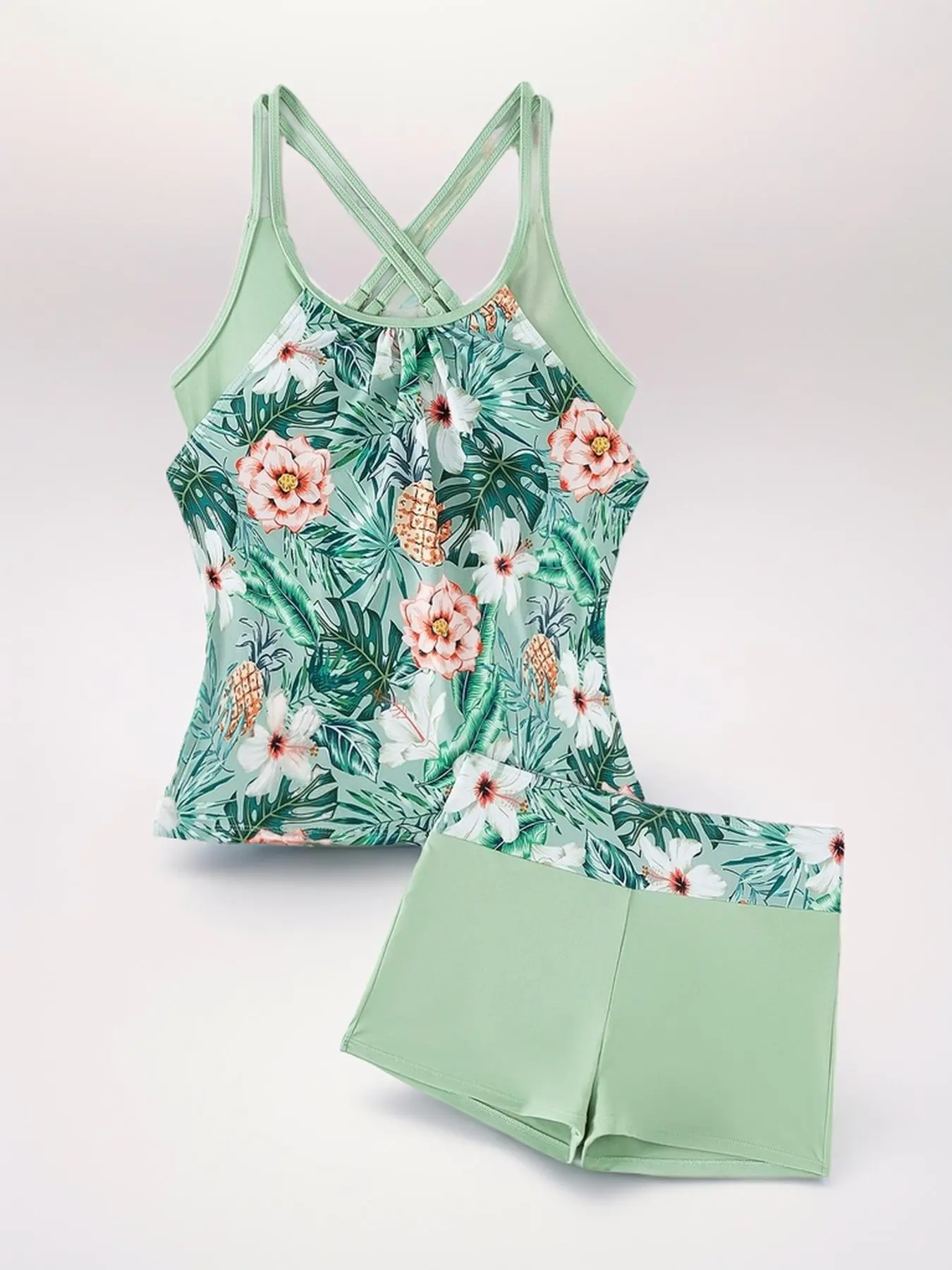 Is a super cute comfy, bathing suit that I absolutely love! It’s made very well and true to size! I like that the shorts stay put they don’t hike up!