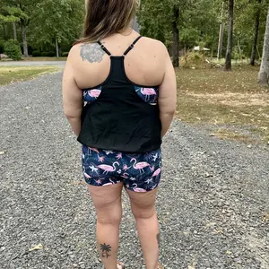 ·Two piece plus size bathing suits for women: Plus size tankini top adopts a double-layer design, making this two-piece set look like a three-piece tankini set. The separated sports bra provides you with stronger support. The outermost tankini top has a loose design, which can completely cover your belly and butts, which is very safe and will not be seen through.