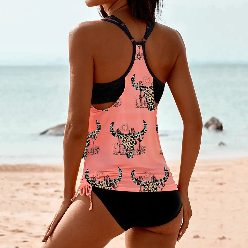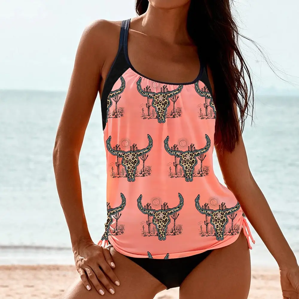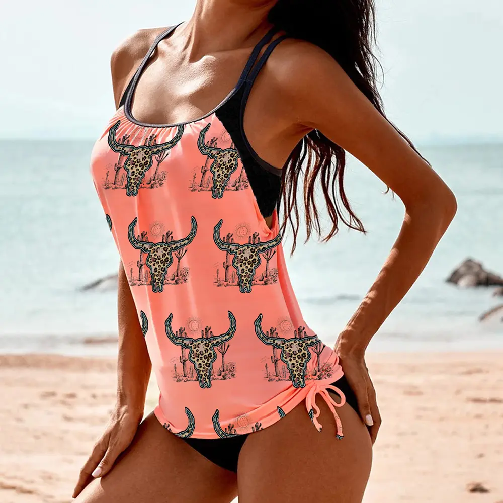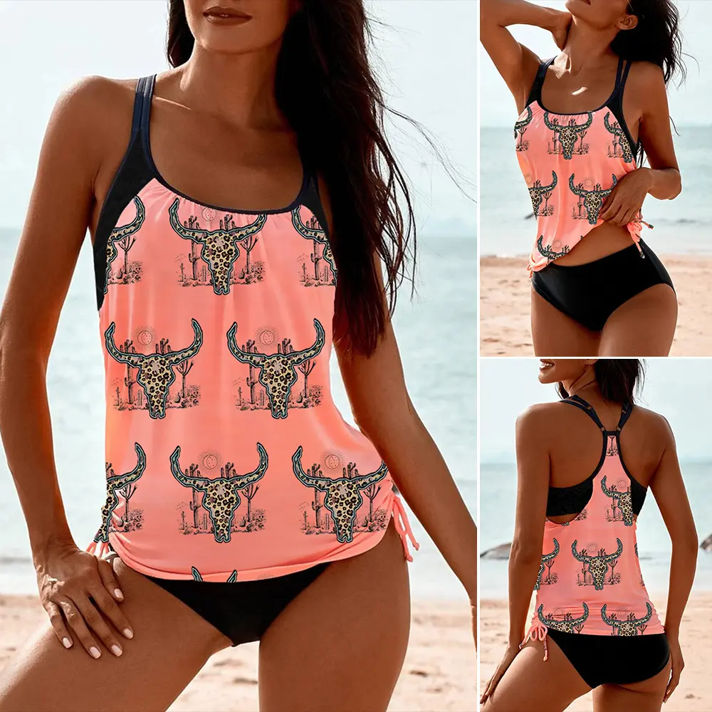 Cow Skull With Leopard Tankini Set For Women - SHESHOW